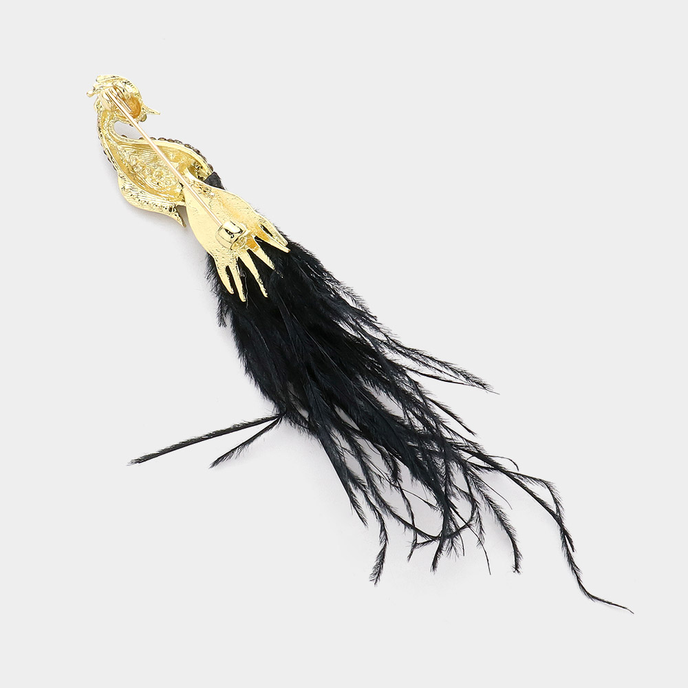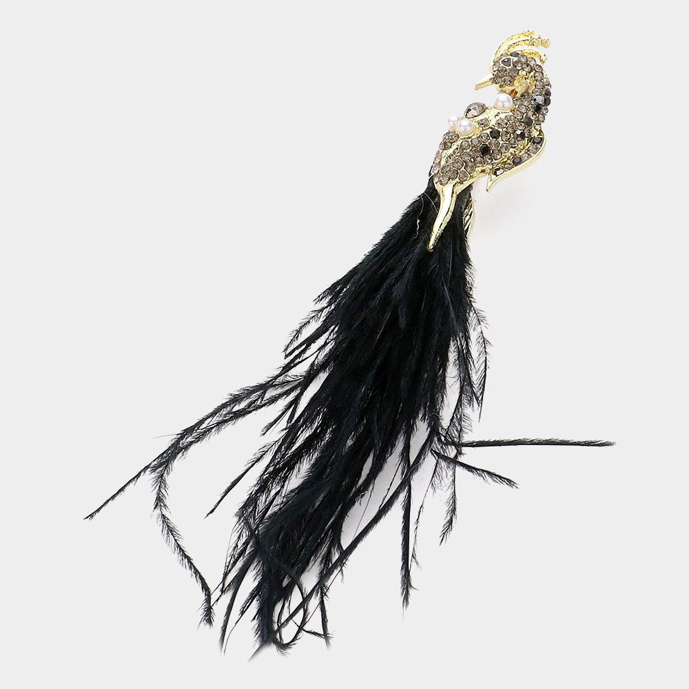 Pearl Pointed Stone Paved Feather Tip Peacock Pin Brooch