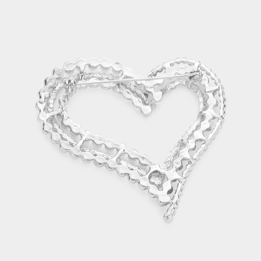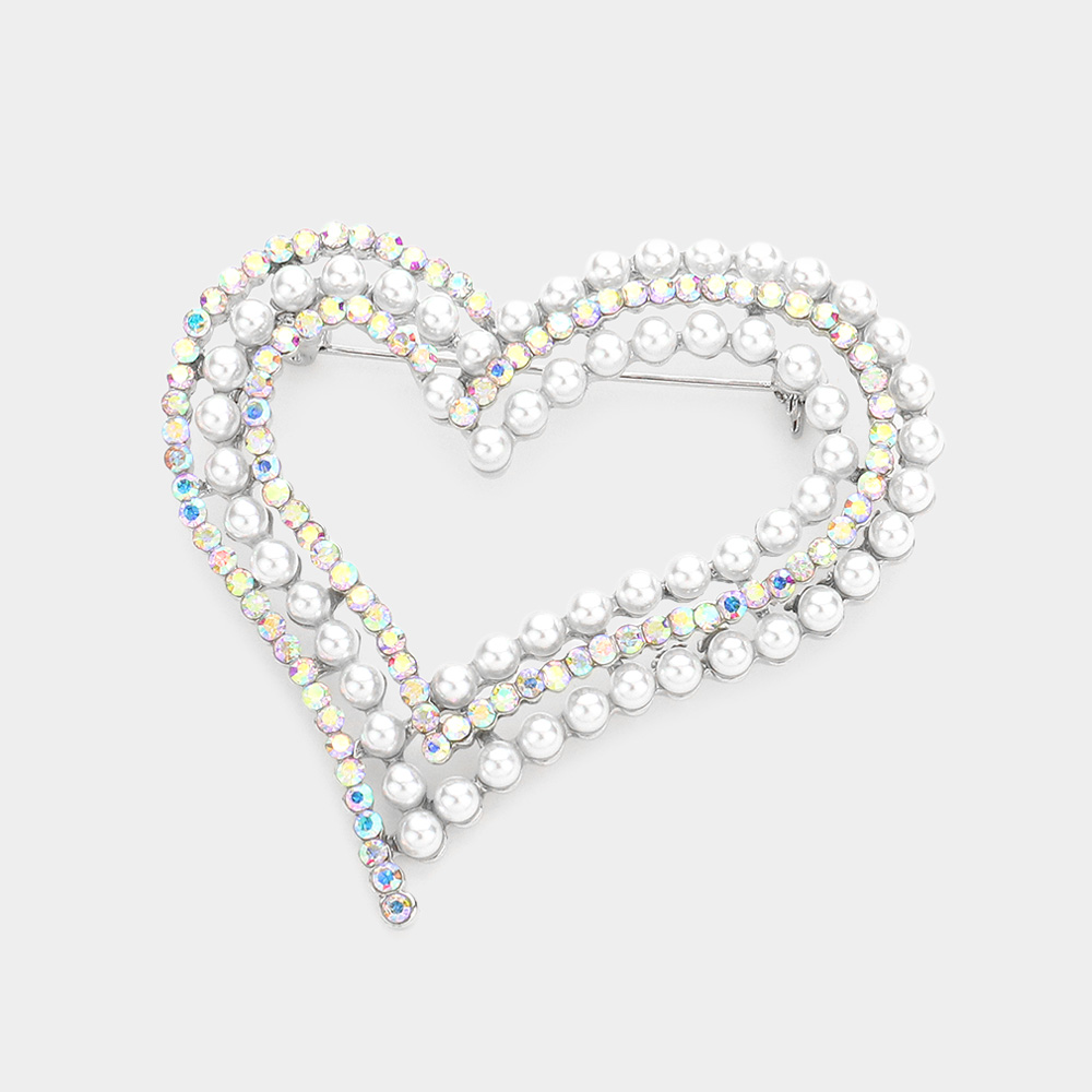 Pearl Rhinestone Embellished Open Heart Pin Brooch