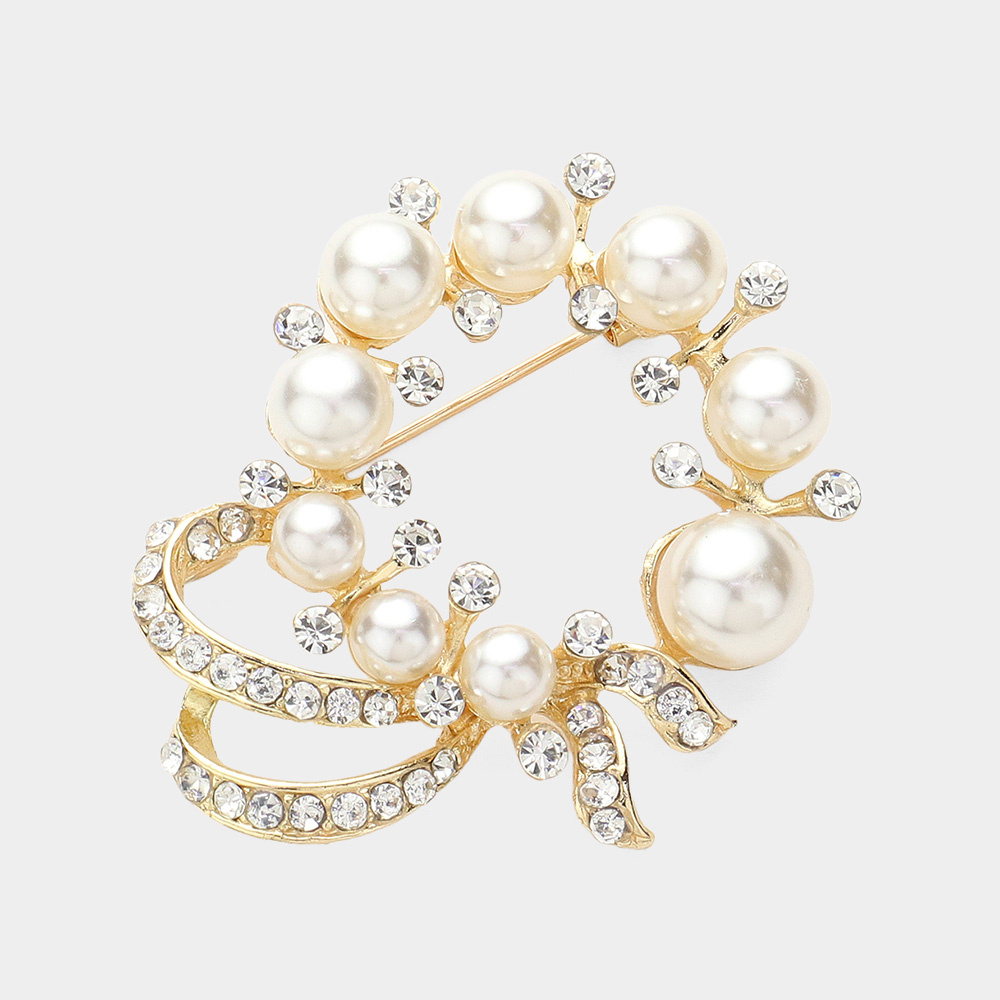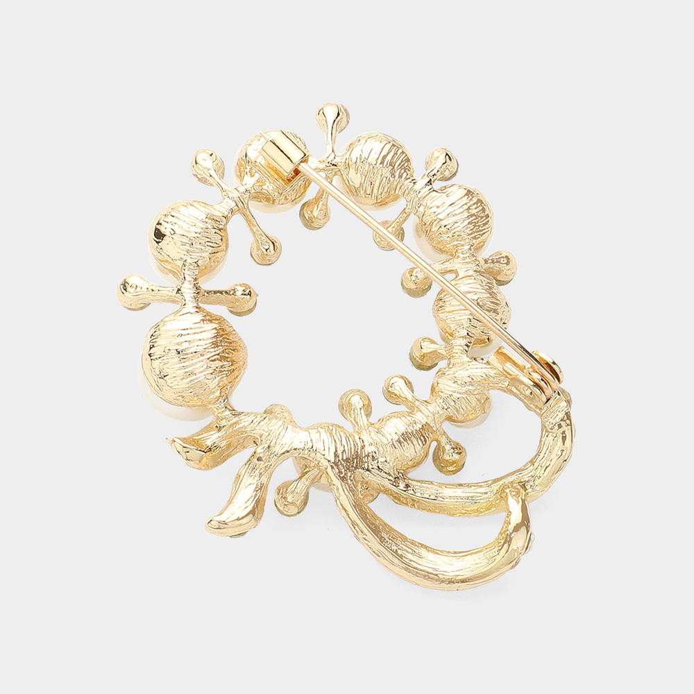 Pearl Rhinestone Open Double Heart Pin Brooch