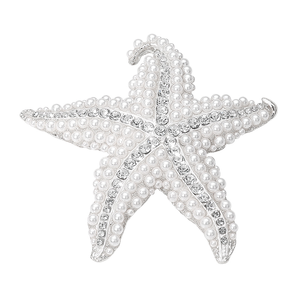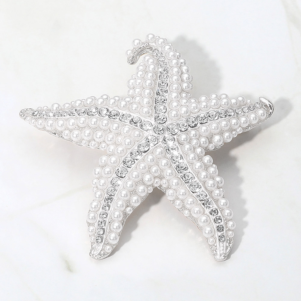 Pearl Rhinestone Embellished Starfish Pin Brooch