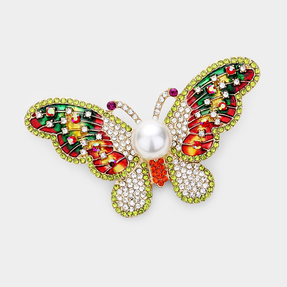 Pearl Rhinestone Pave Butterfly Pin Brooch