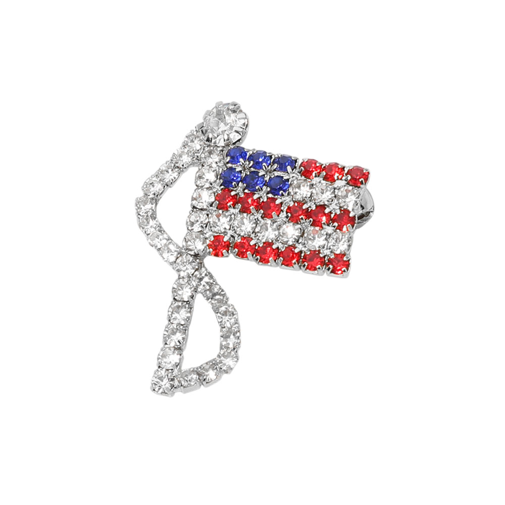 • Statement flag inspired brooch designed with a flowing ribbon silhouette and shimmering rhinestone accents. A bold decorative accessory ideal for jackets, coats, scarves, hats, bags, and event outfits. Perfect for patriotic celebrations, themed events, gifting, or adding eye catching detail to everyday styling.