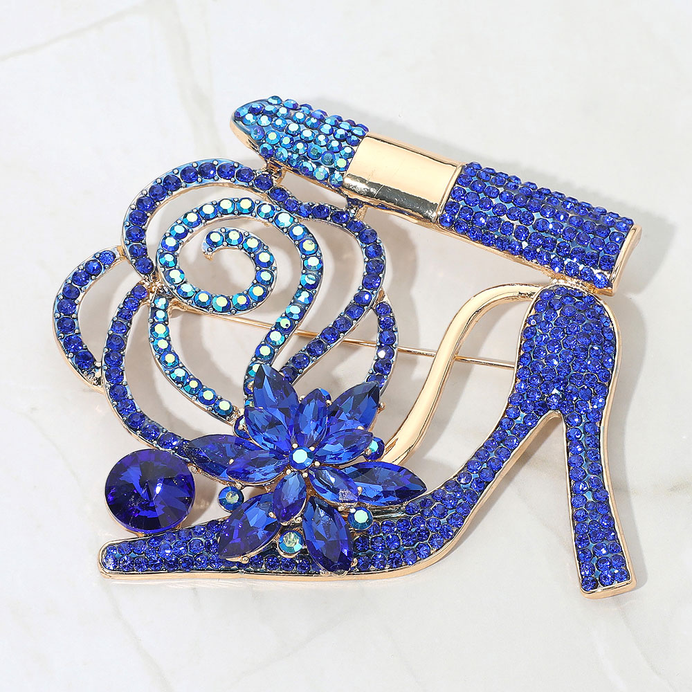 Rhinestone Embellished Flower Accent Glam High Heel Lipstick Pin Brooch