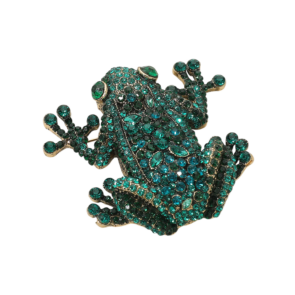 Details • Size : 2.75" X 2.5" • Pin Brooch • Add playful elegance to your style with this sparkling frog brooch, adorned with shimmering crystals for a dazzling finish. Perfect as a statement accessory or a thoughtful gift, this eye-catching pin brings charm, personality, and a touch of sparkle to any outfit. • Lead and Nickel Compliant