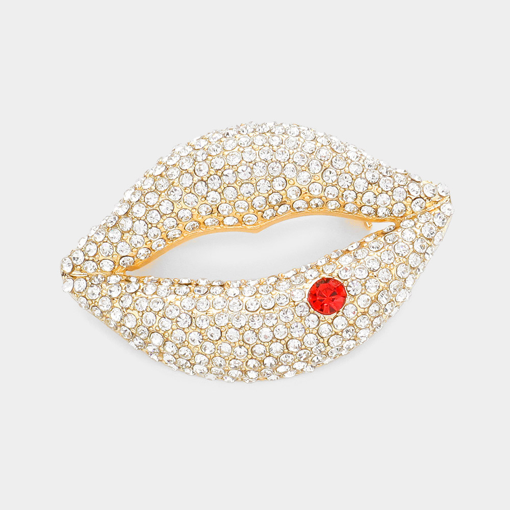 Rhinestone Embellished Lips Pin Brooch
