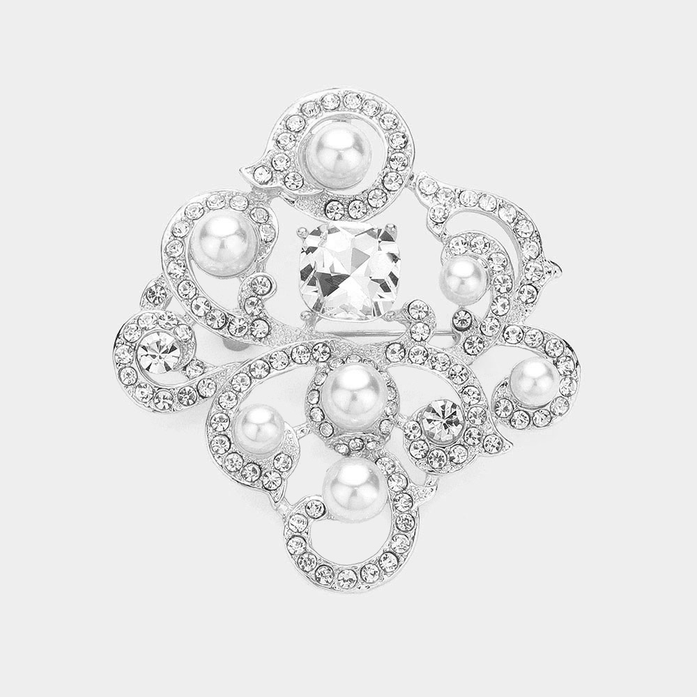 Rhinestone Embellished Pearl Pointed Pin Brooch