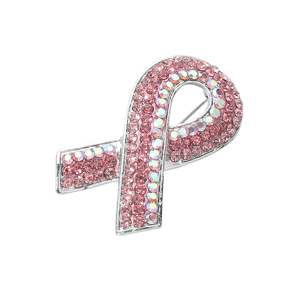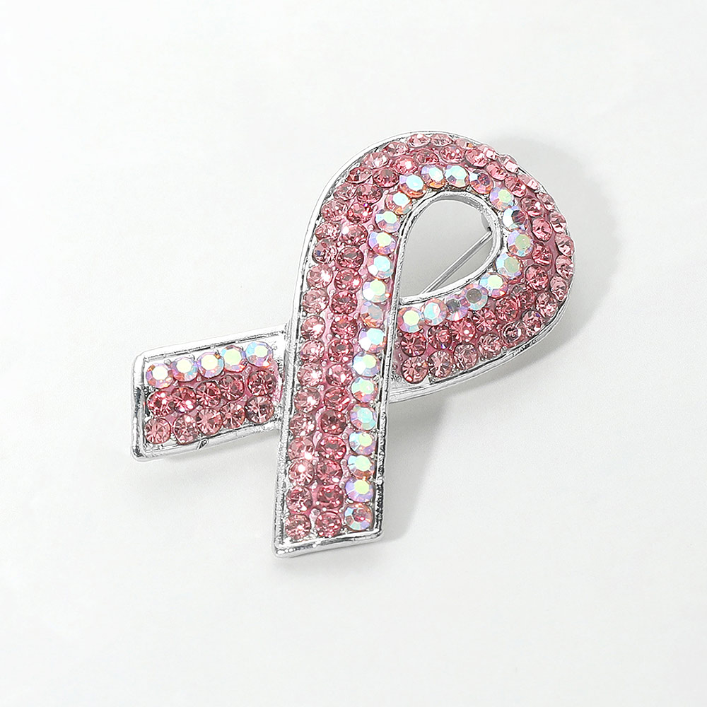 Details • Size : 2" X 1.25" • Pin Brooch • Show support with this elegant pink ribbon brooch, adorned with sparkling crystals for a touch of shine. Perfect as a meaningful accessory or gift, it symbolizes awareness while adding charm to any outfit or occasion. • Lead and Nickel Compliant