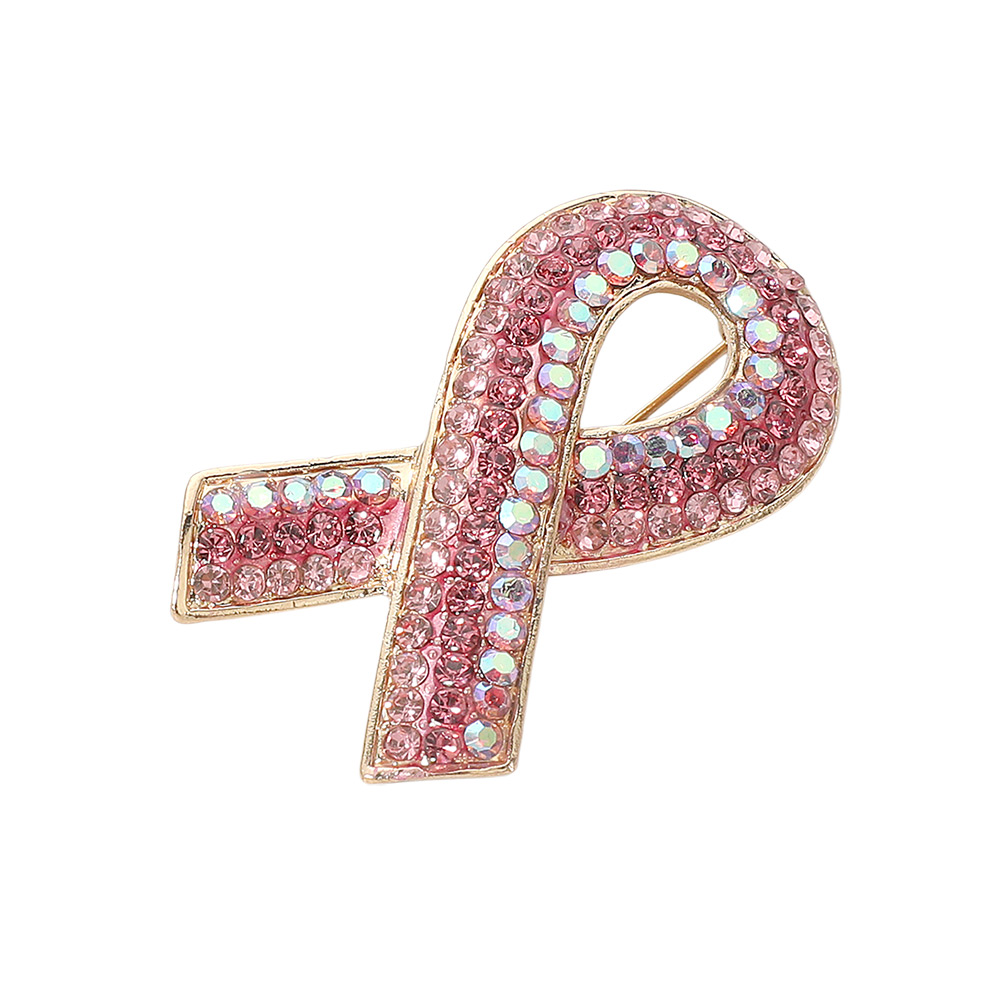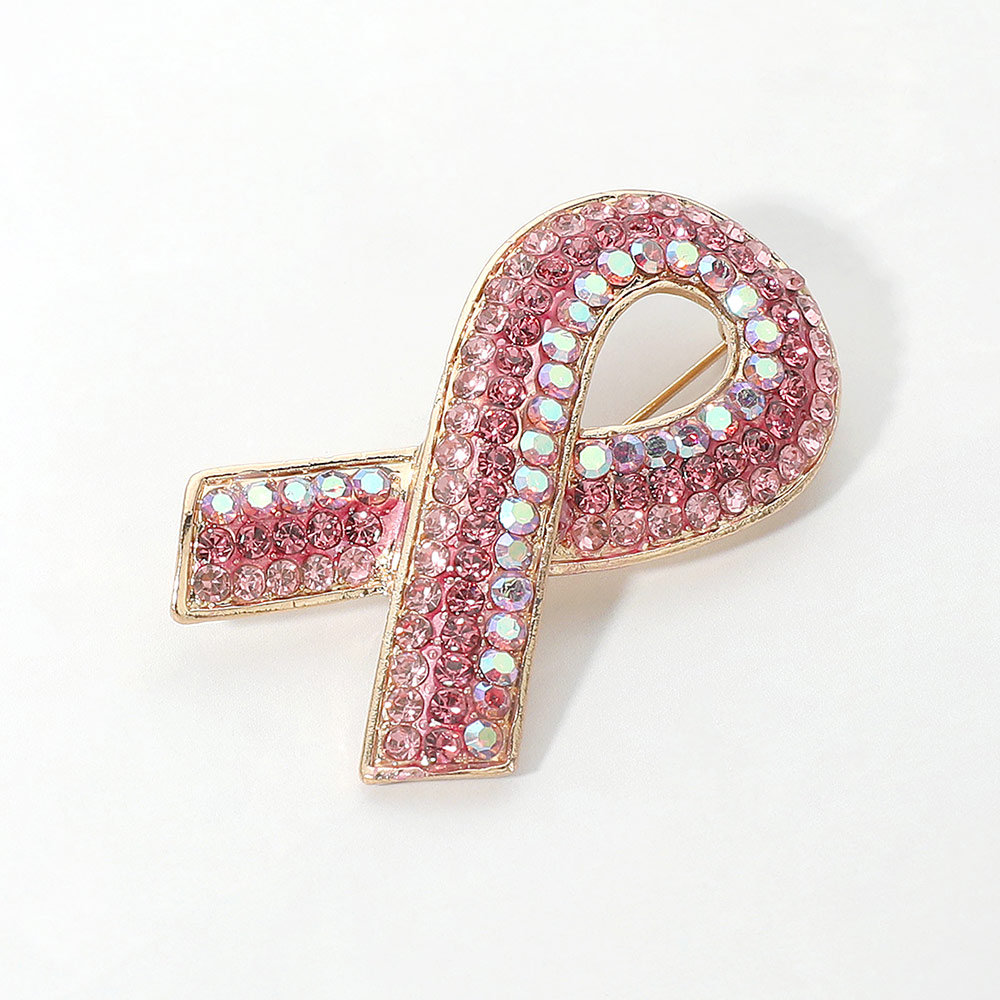 Details • Size : 2" X 1.25" • Pin Brooch • Show support with this elegant pink ribbon brooch, adorned with sparkling crystals for a touch of shine. Perfect as a meaningful accessory or gift, it symbolizes awareness while adding charm to any outfit or occasion. • Lead and Nickel Compliant