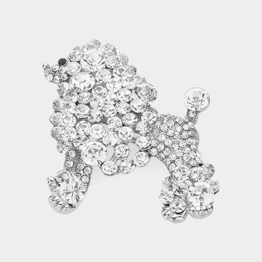 • Add playful elegance to your look with this crystal poodle brooch, designed with dazzling stones in a charming silhouette. Perfect for dog lovers and fashion-forward individuals, it enhances jackets, scarves, and dresses with a touch of sparkle and personality.