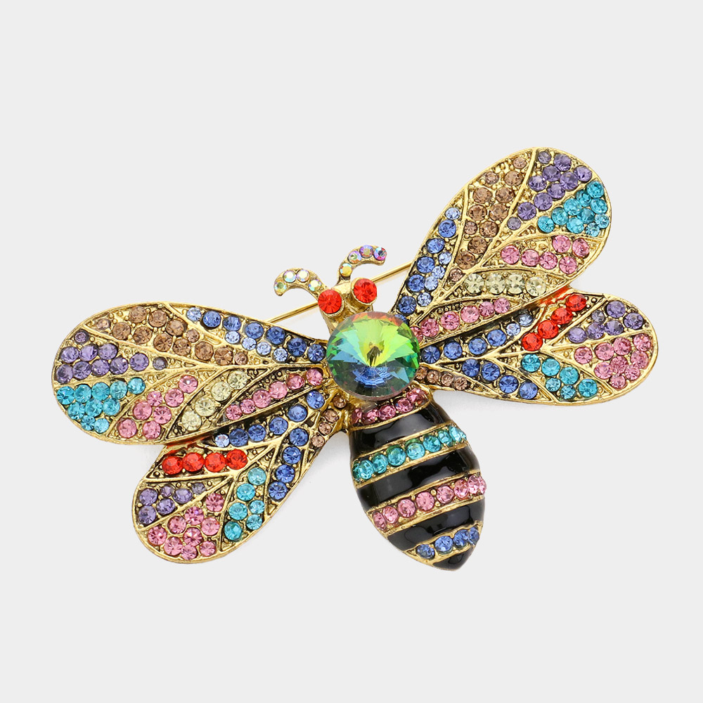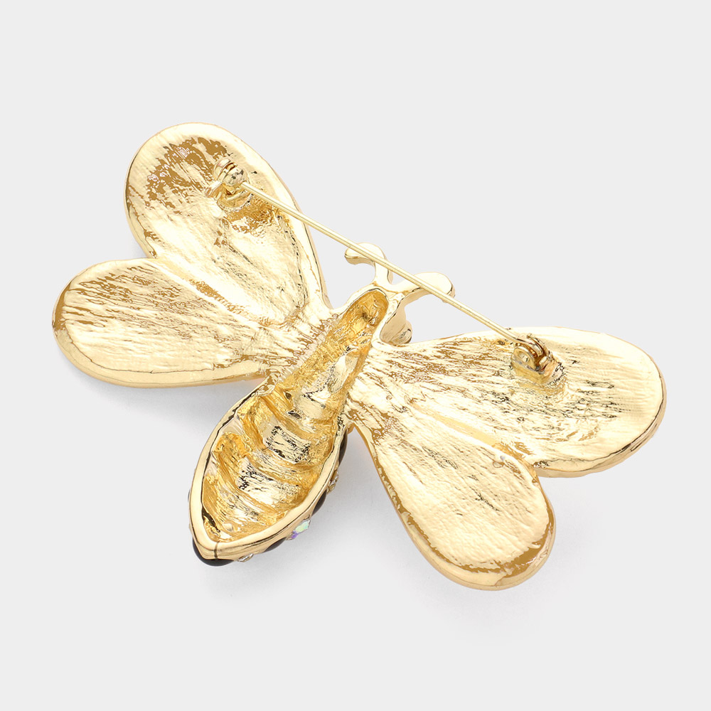 Metal Hoop Rhinestone Embellished Dragonfly Dangle Pin Catch Earrings