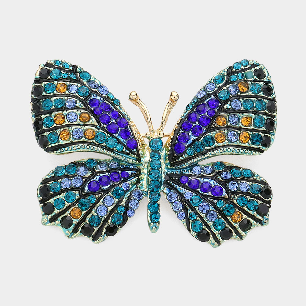 Rhinestone Paved Butterfly Charm Station Waist Chain Belt