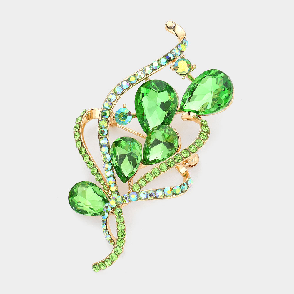 Rhinestone Pave Glass Stone Embellished Brooch