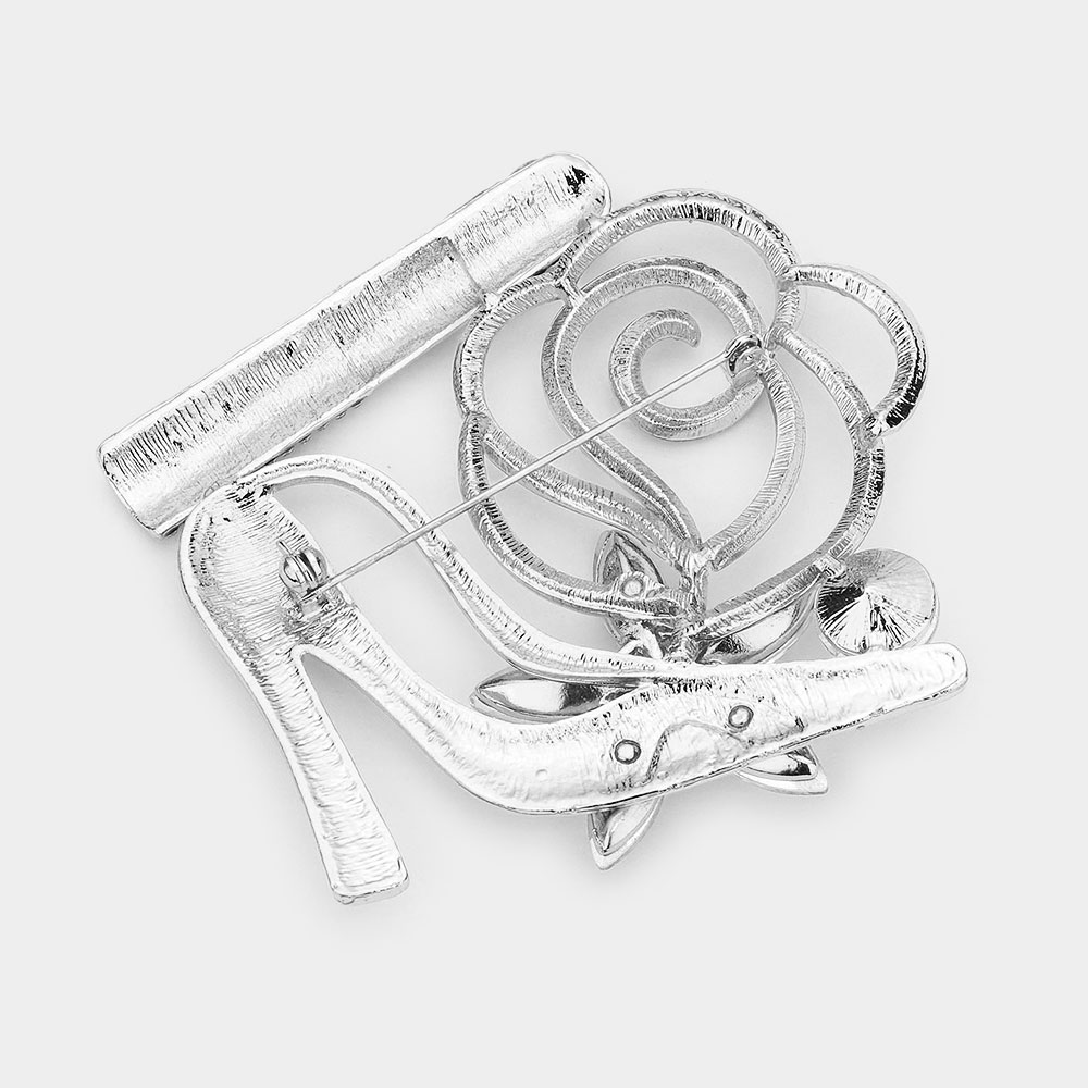Rhinestone Pave High Heel Flower Lipstick Brooch