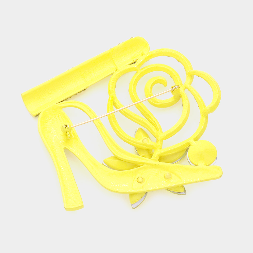 Rhinestone Pave High Heel Flower Lipstick Brooch
