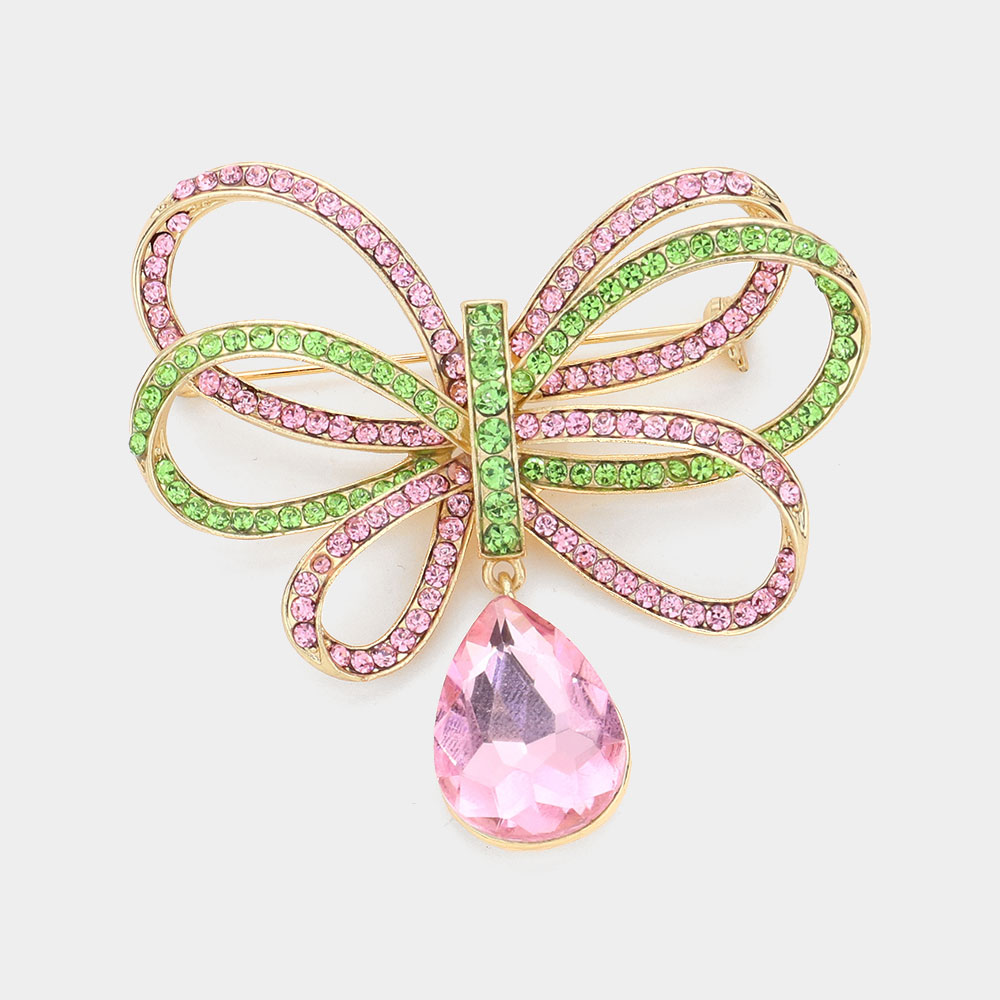 Rhinestone Pave Ribbon Glass Stone Dangle Brooch