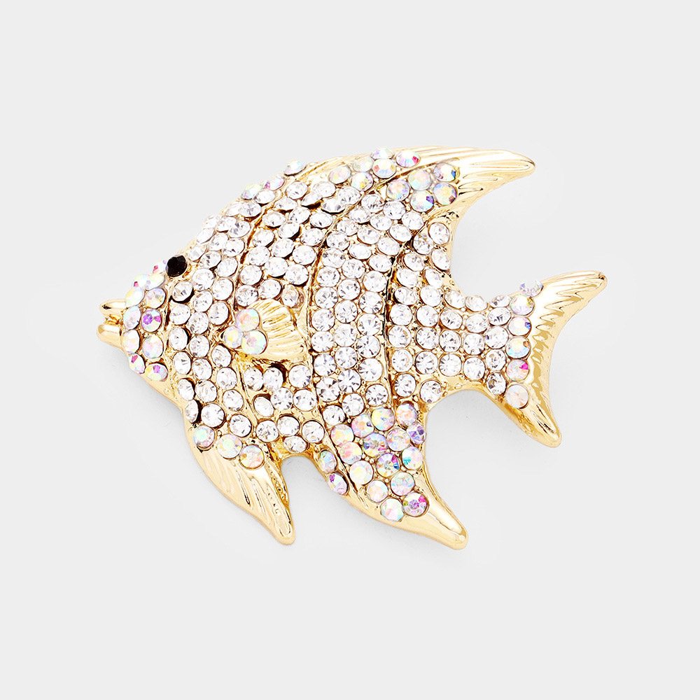 Rhinestone Pave Tropical Fish Pin Brooch