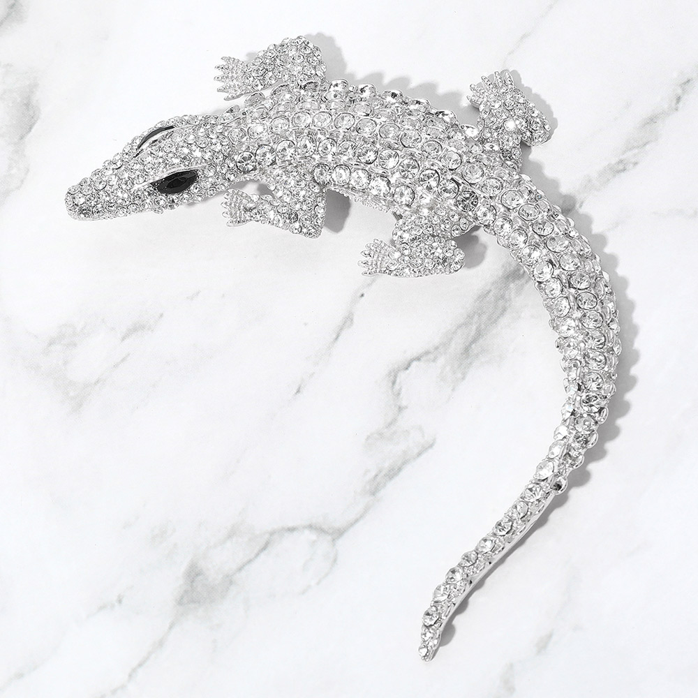 Rhinestone Paved Alligator / Crocodile Pin Brooch