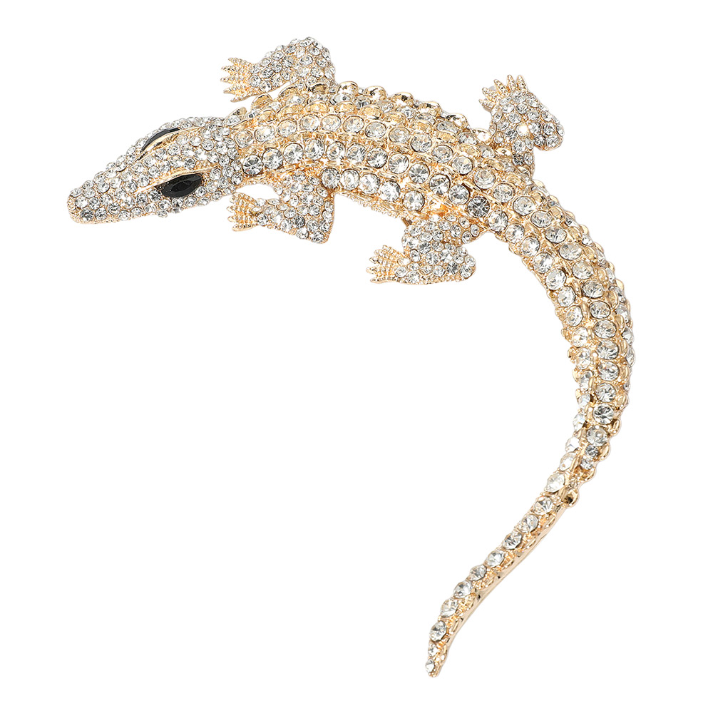 Rhinestone Paved Alligator / Crocodile Pin Brooch