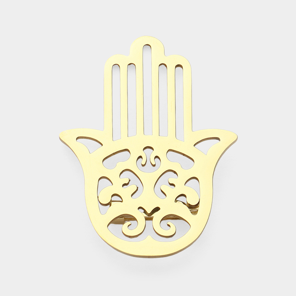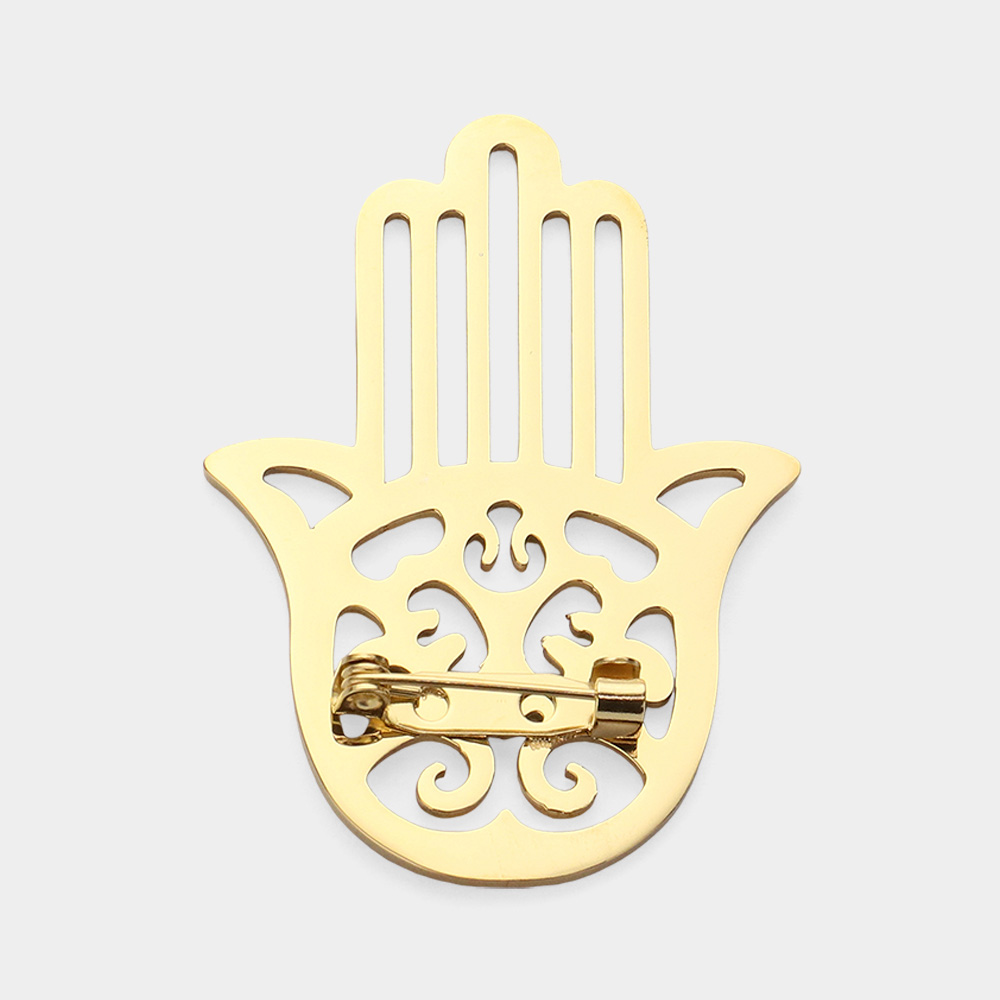 Stainless Steel Cutout Hamsa Hand Pin Brooch