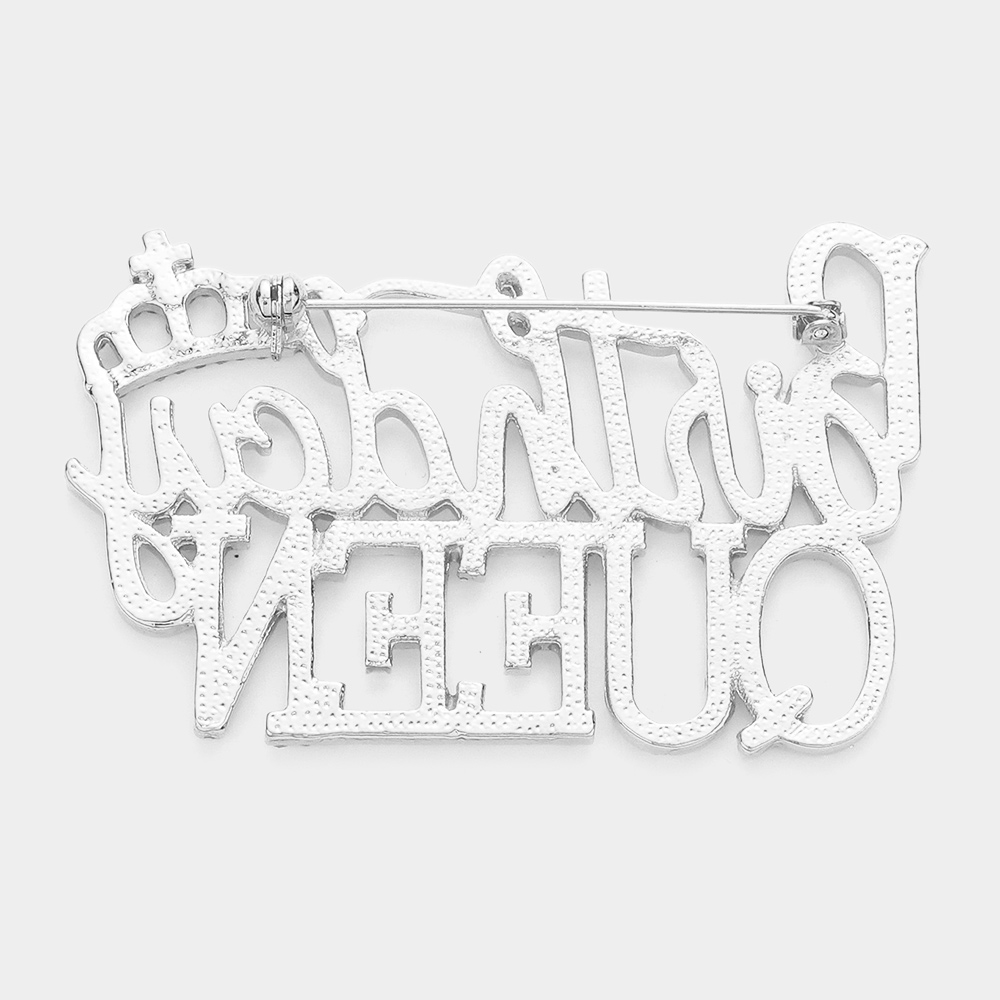 Stone Embellished Birthday Queen Message Crown Pin Brooch
