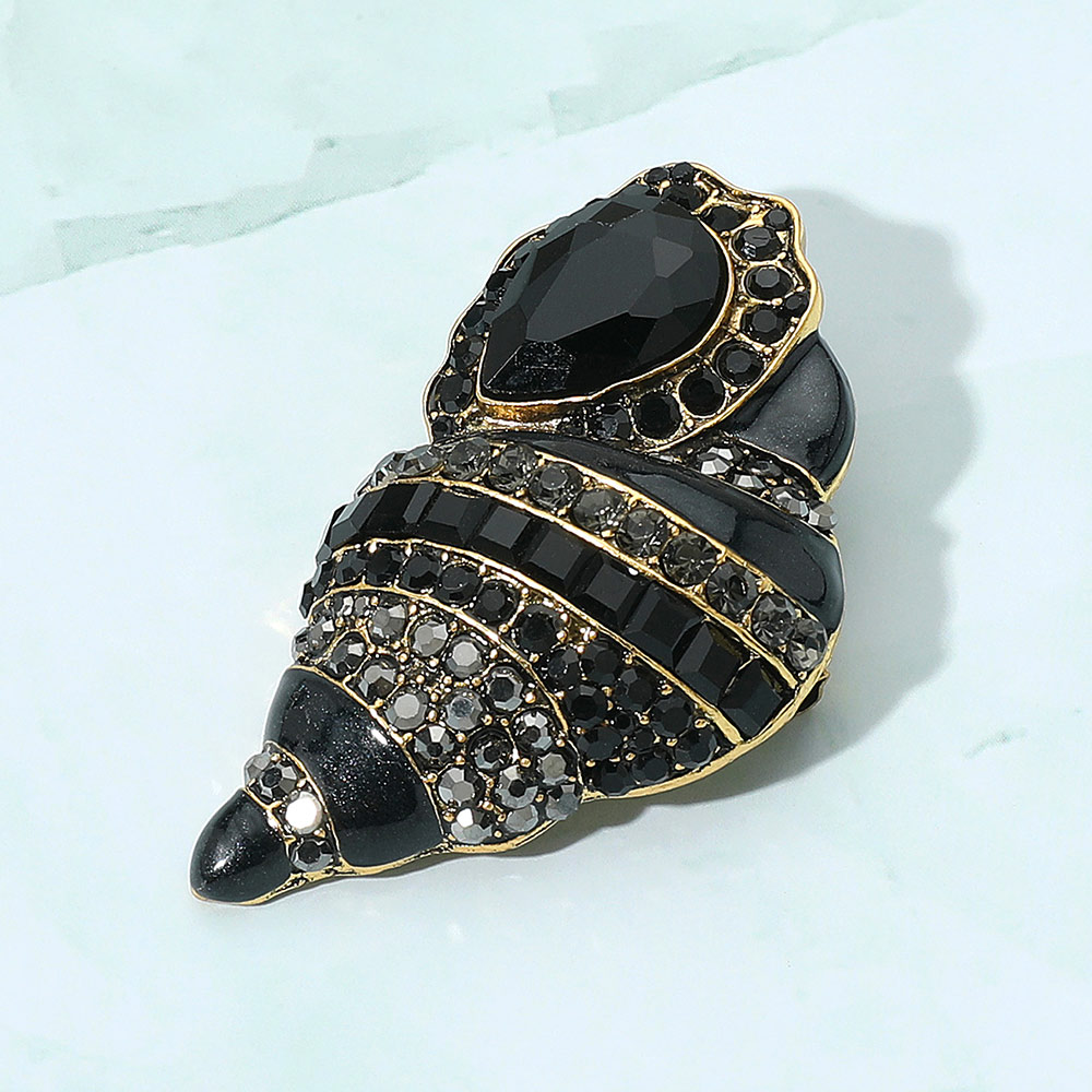 Details • Size : 1.3" X 2.3" • Pin Brooch • This stunning seashell brooch features radiant rhinestones and shimmering accents that capture the beauty of the ocean. Perfect for coastal events or everyday elegance, it adds a touch of sparkle and charm to jackets, scarves, or bags with refined nautical flair. • Lead and Nickel Compliant