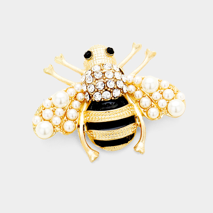 Stone Honey Bee Pearl Cluster Pin Brooch
