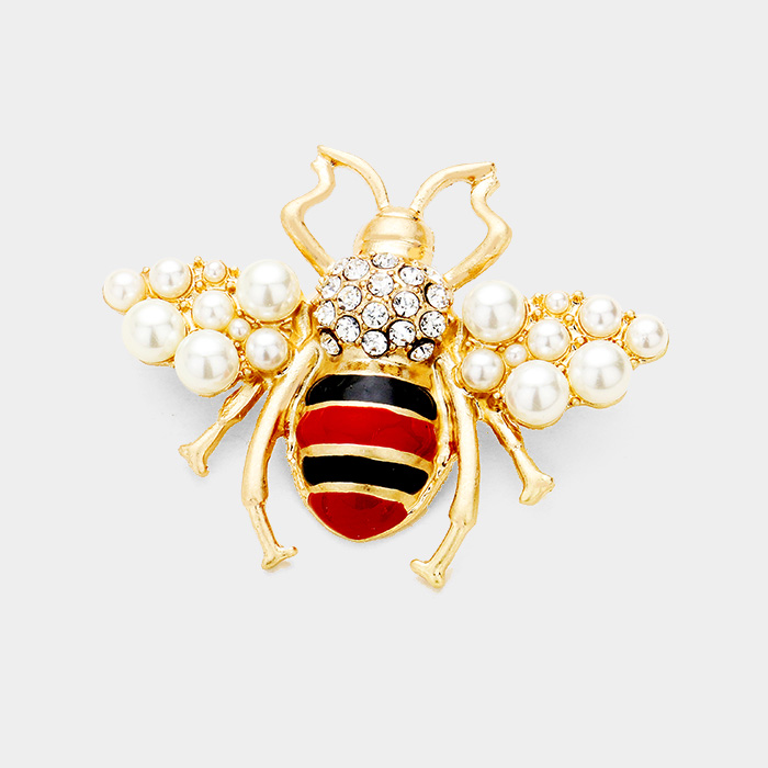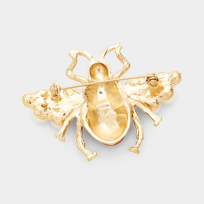 Stone Honey Bee Pearl Cluster Pin Brooch
