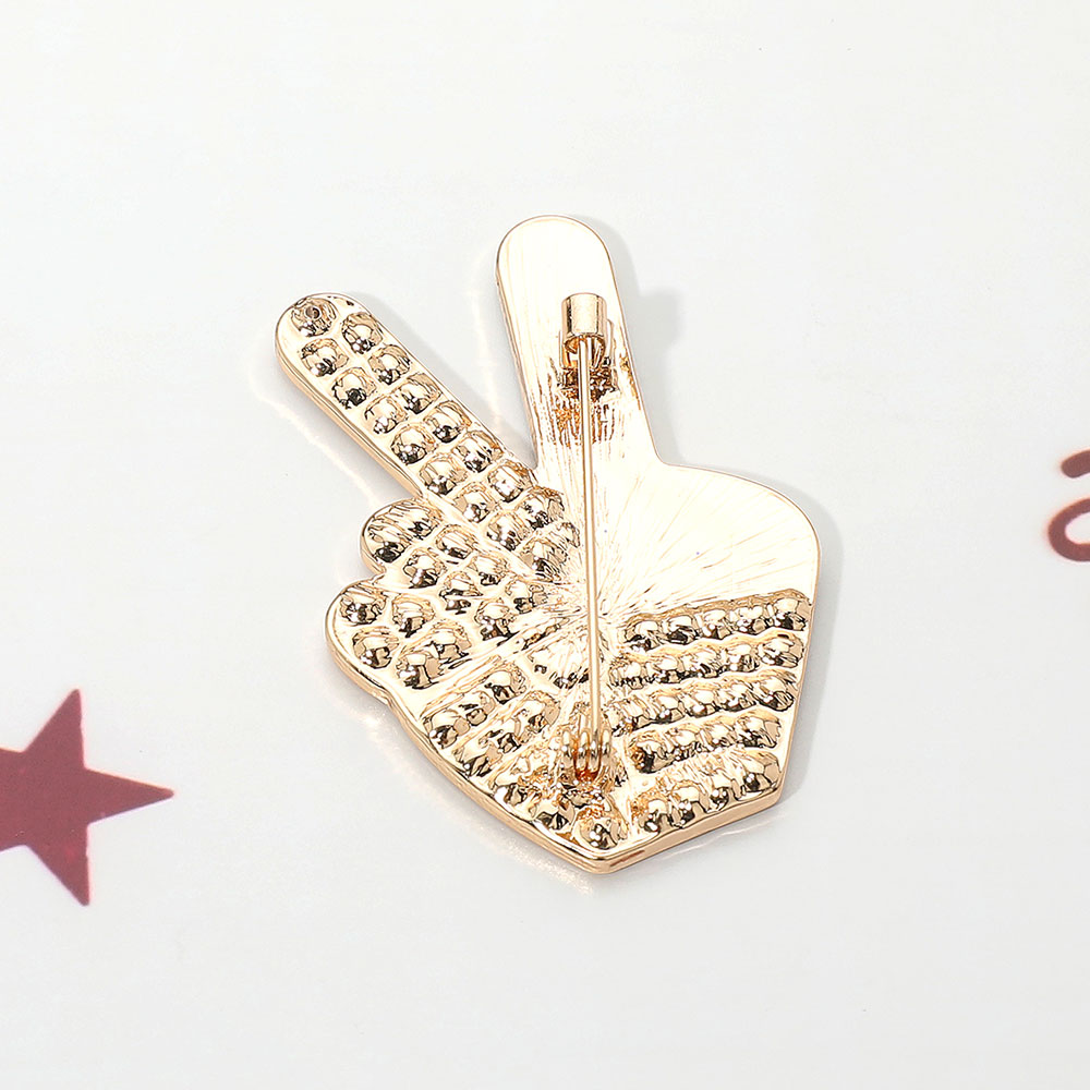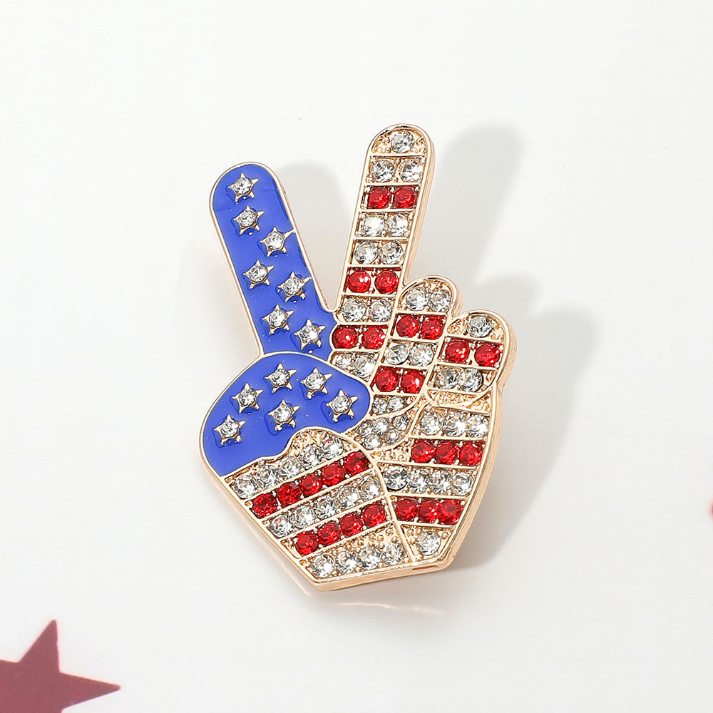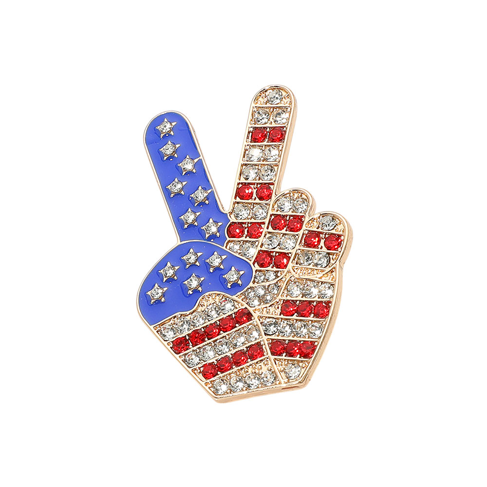 Stone Paved American USA Flag Peace Hand Sign Pin Brooch