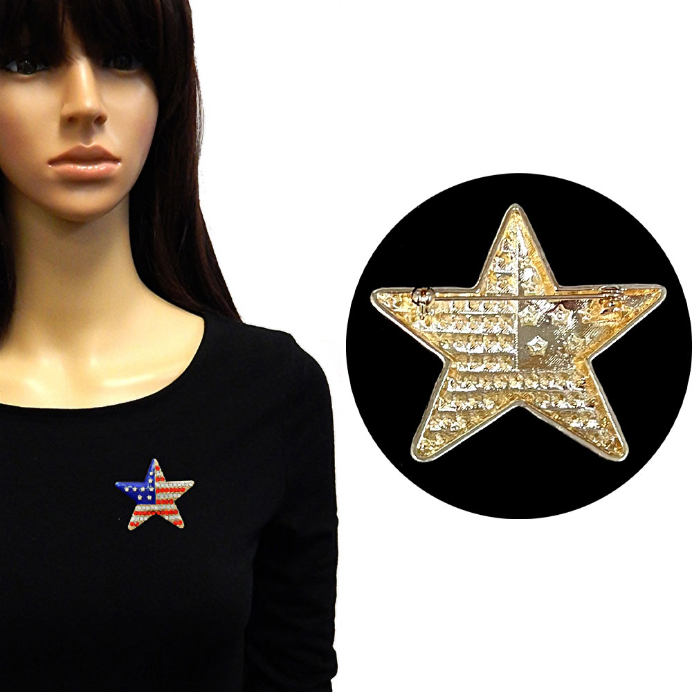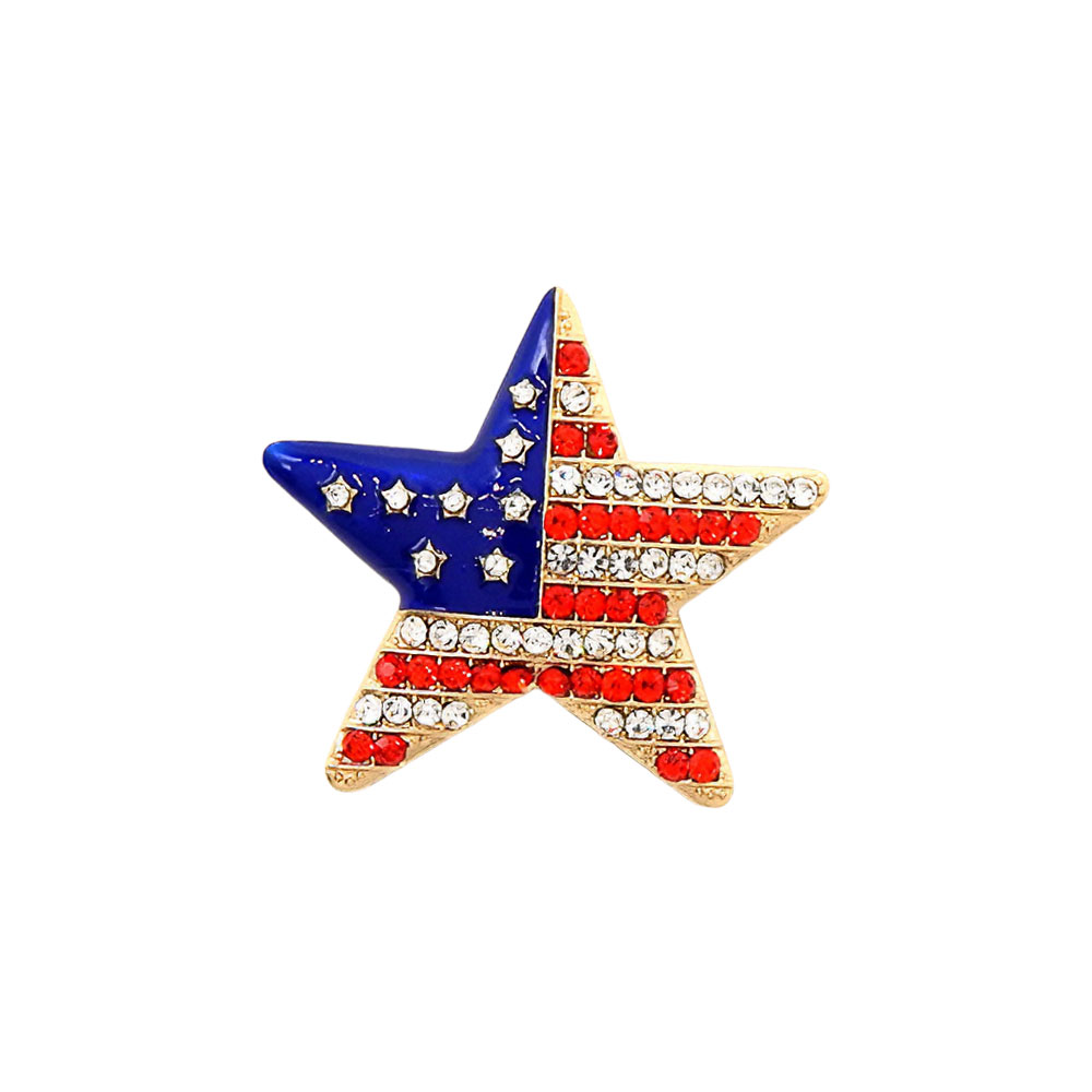 Stone Paved American USA Flag Star Pin Brooch