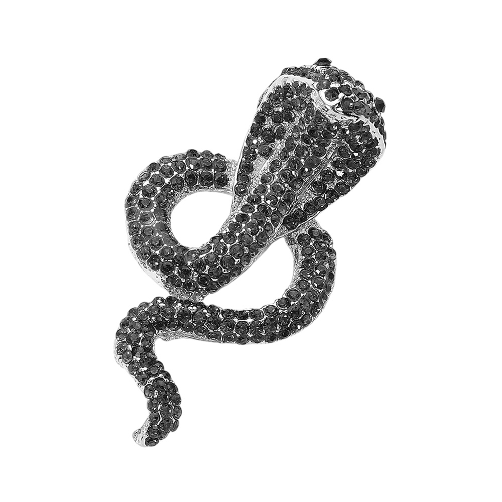 White Gold Dipped CZ Embellished Metal Snake Pendant Necklace