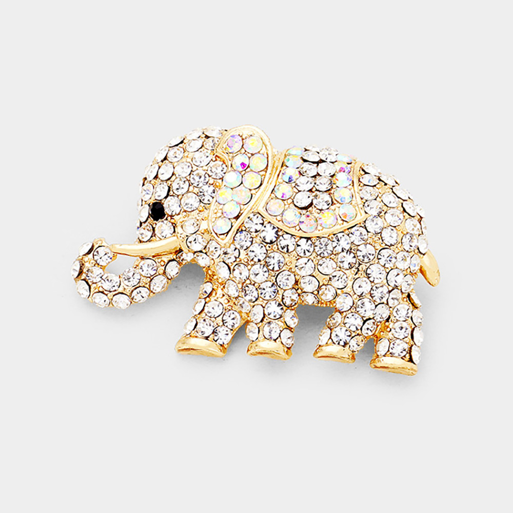 Stone Paved Elephant Pin Brooch