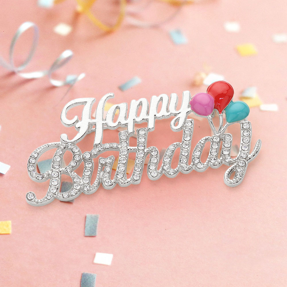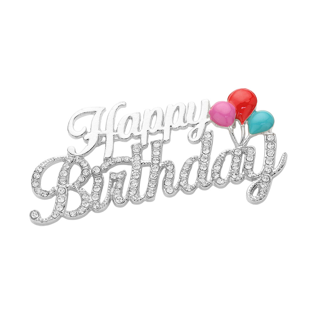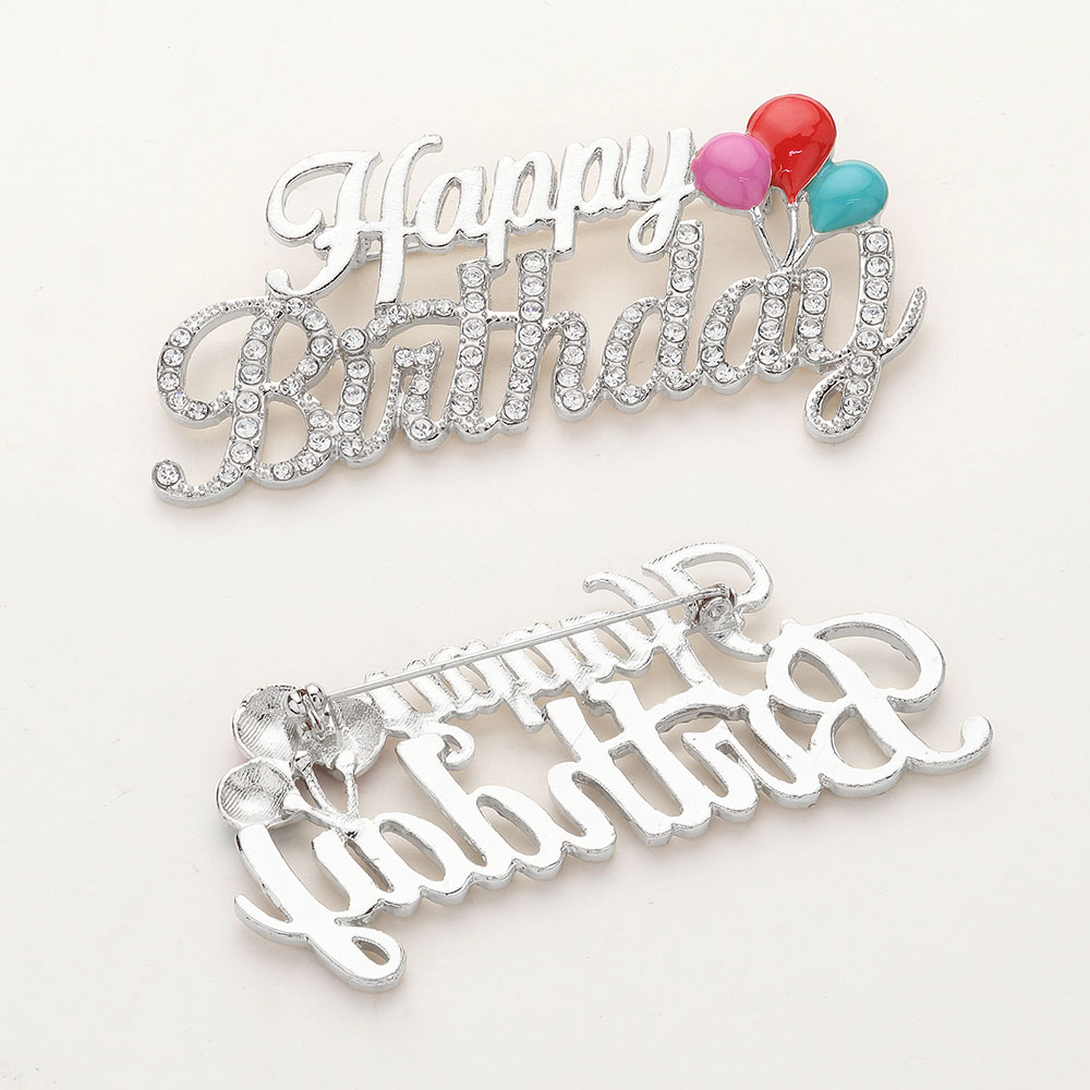 Stone Paved Happy Birthday Message Pin Brooch