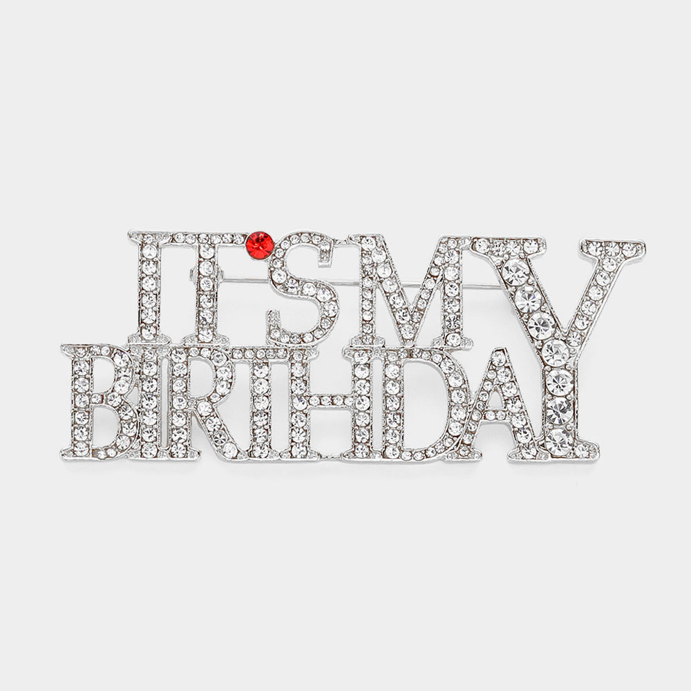 Stone Paved ITS MY BIRTHDAY Message Pin Brooch
