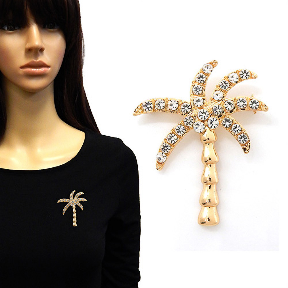 Stone Paved Palm Tree Pin Brooch