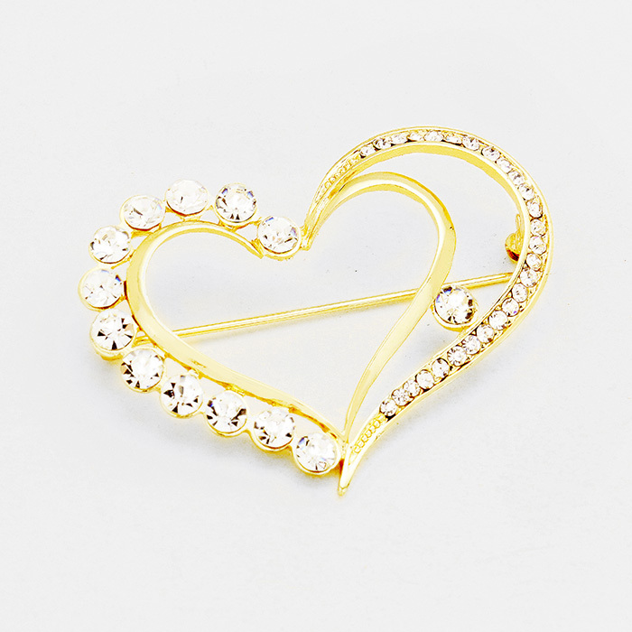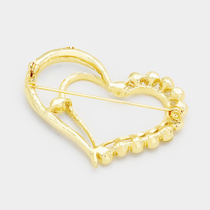 Gold Dipped Stone Paved Open Heart Pendant Snake Chain Layered Necklace