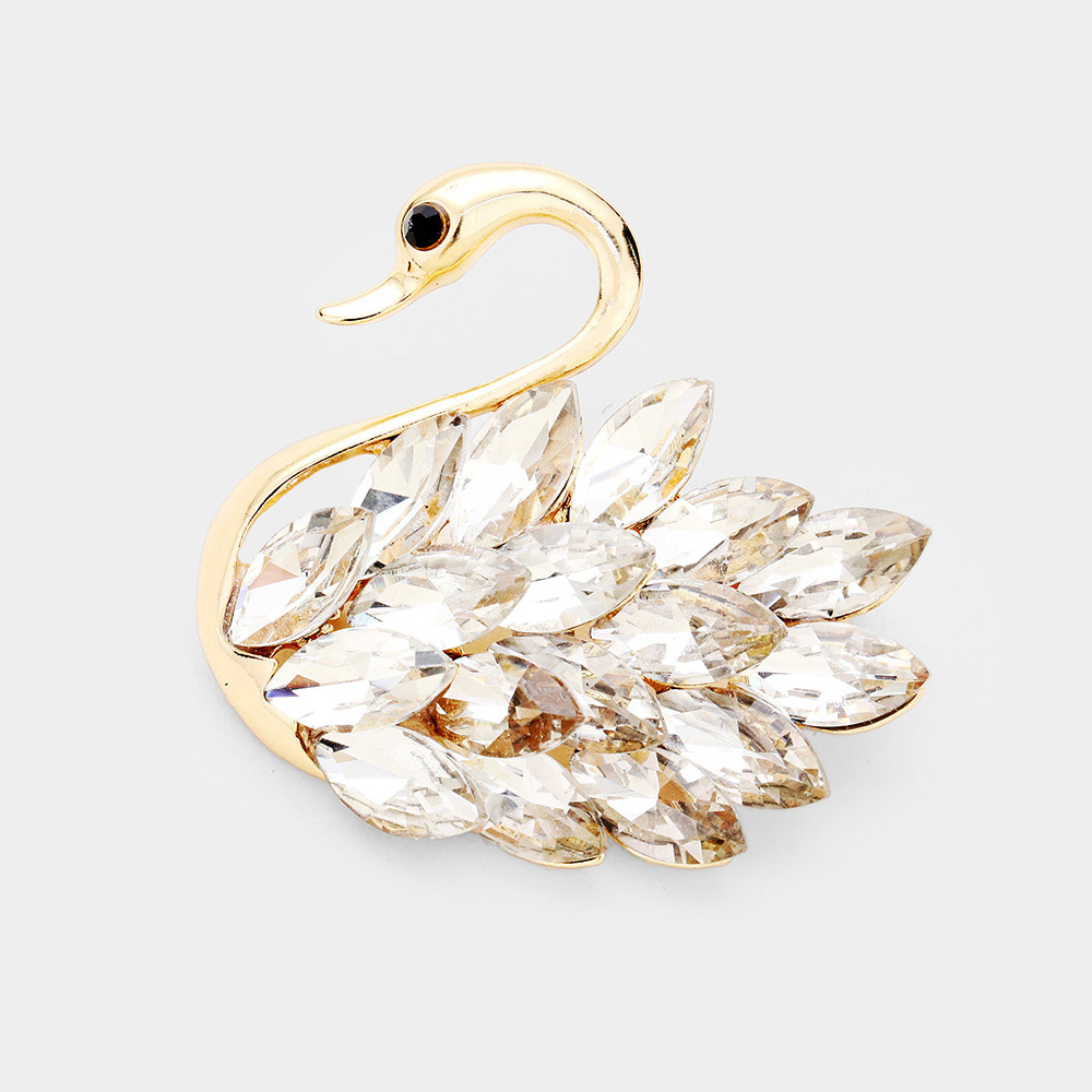 Swan Marquise Stone Cluster Accented Pin Brooch