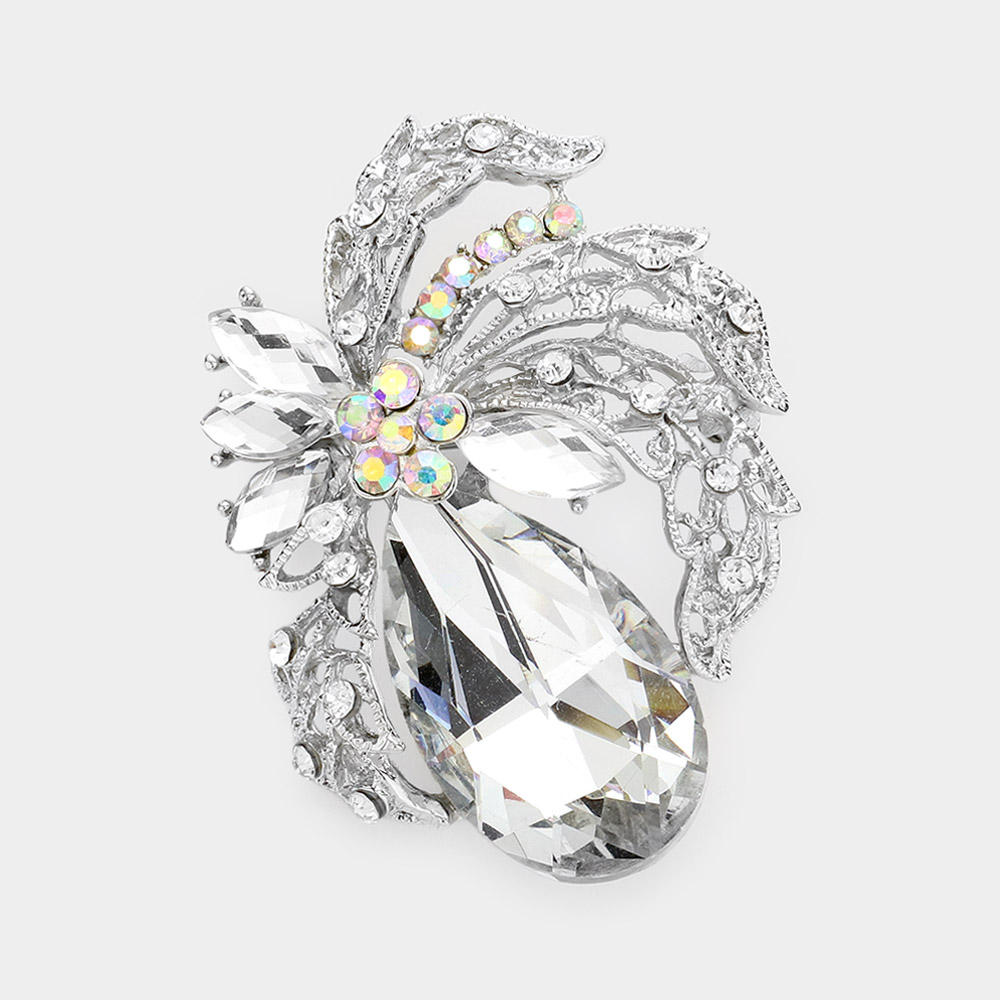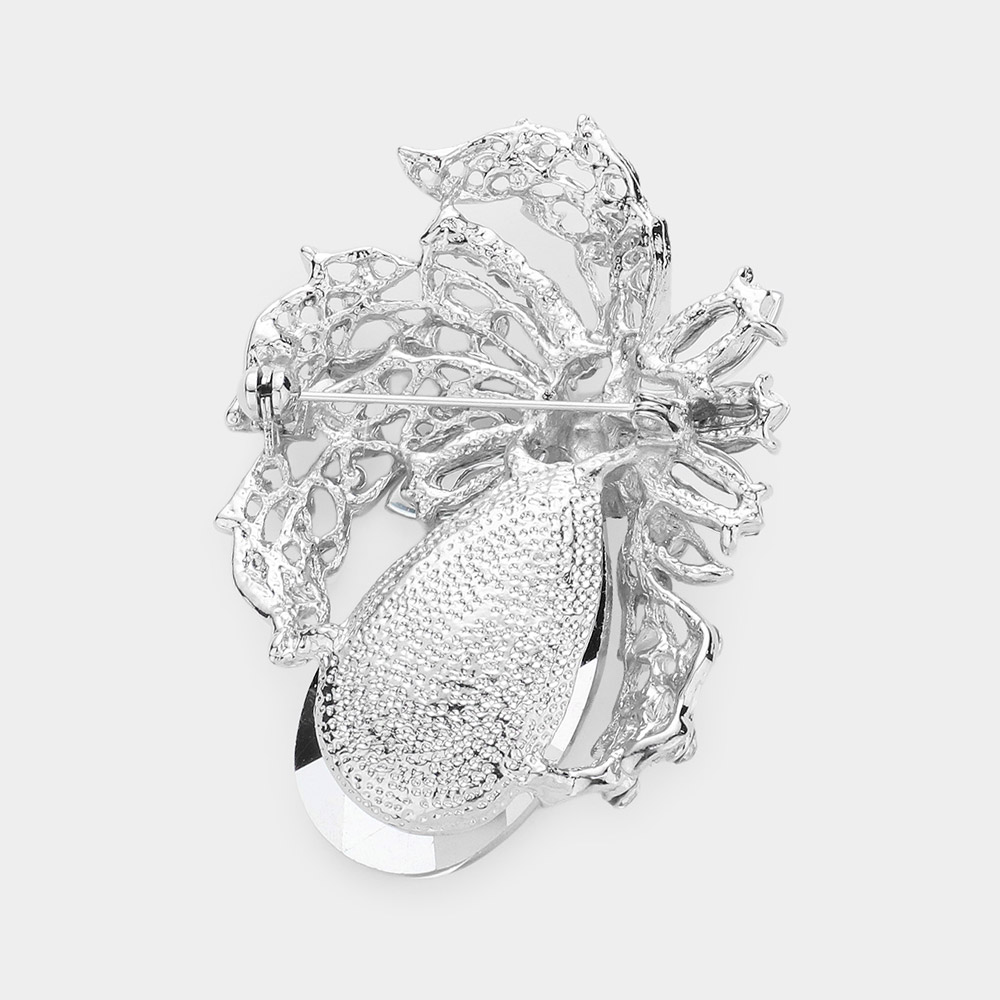 Teardrop Stone Accented Leaf Pin Brooch