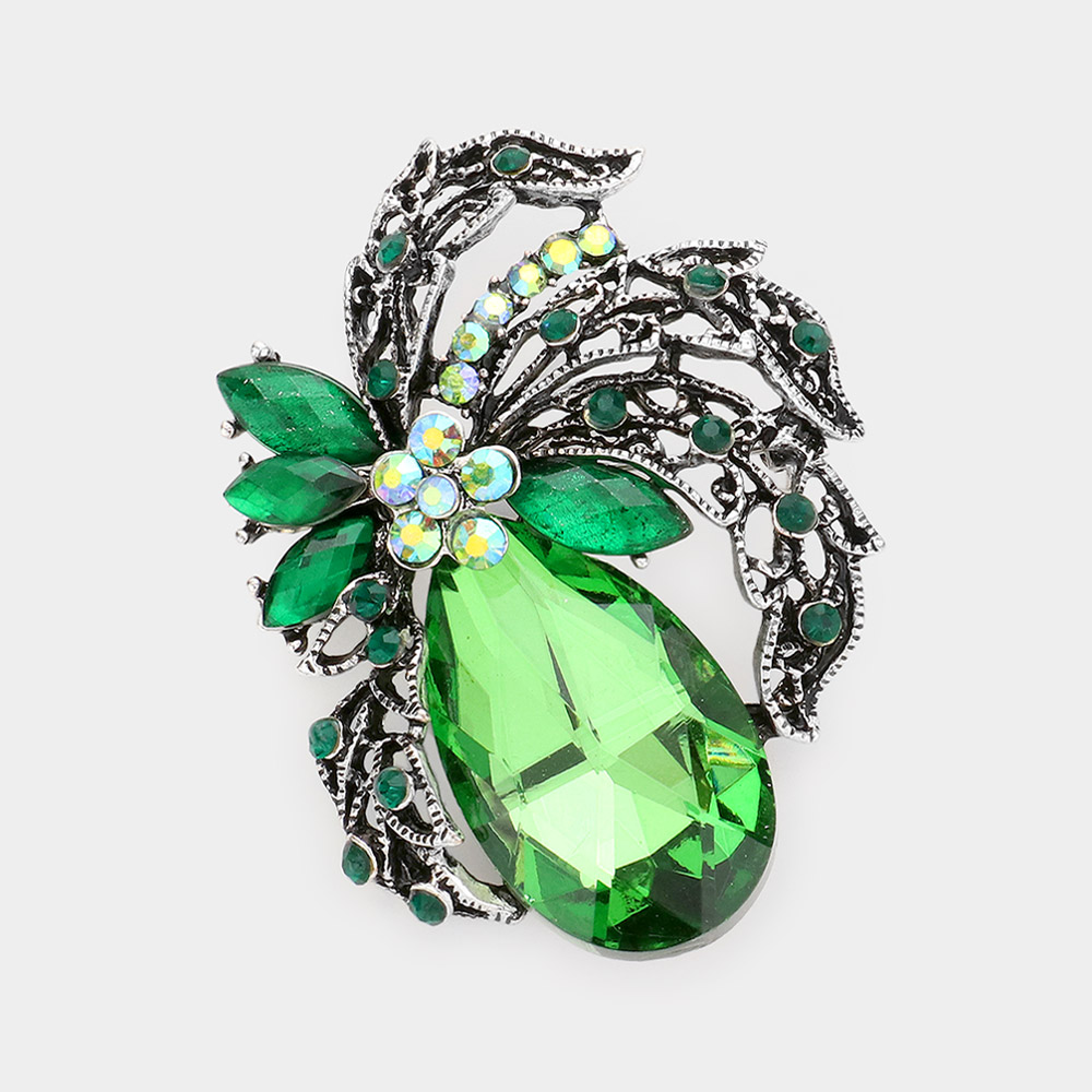 Bold Rhinestone Flower Statement Brooch / Pendant
