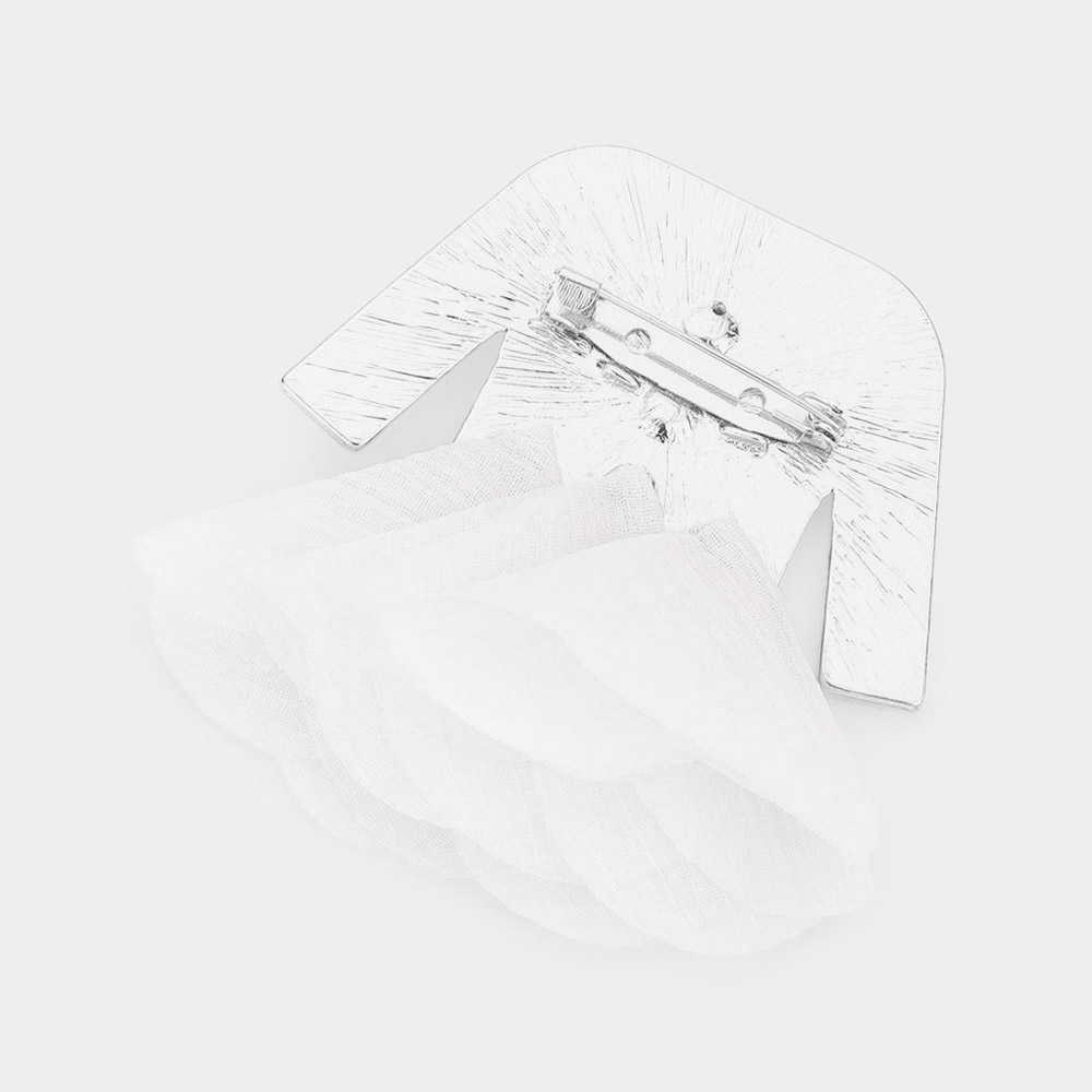 Oversized Pearl Rhinestone Bud Pointed Enamel Rim Metal Cutout Flower Earrings