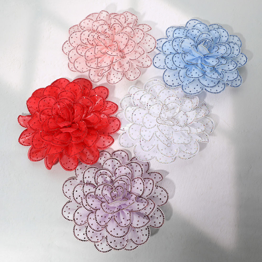 Elegant Rhinestone Rim Fabric Flower Clip On Accessory