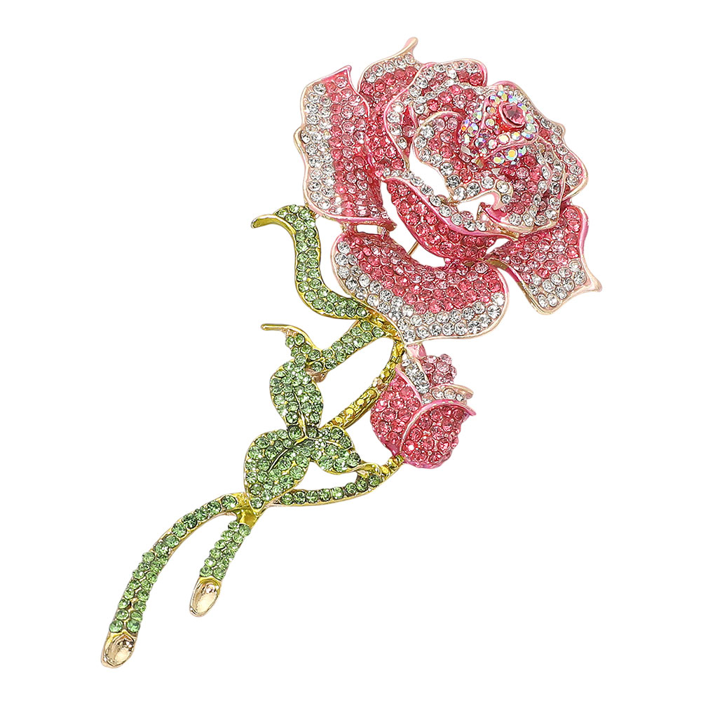 Details • Size : 2.5" X 5.5" • Pin Brooch • Chic rhinestone rose brooch featuring a detailed floral silhouette with shimmering stones on the petals, stem, and leaves. Perfect for accessorizing jackets, dresses, scarves, or bags with a refined and eye-catching statement touch. • Lead and Nickel Compliant