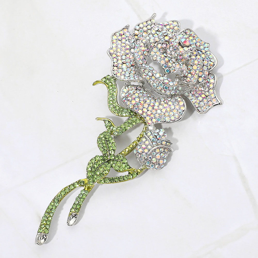 Bold Elegant Rhinestone Rose Stem Pin Brooch Bold Elegant Rhinestone Rose Stem Pin Brooch Bold Elegant Rhinestone Rose Stem Pin Brooch