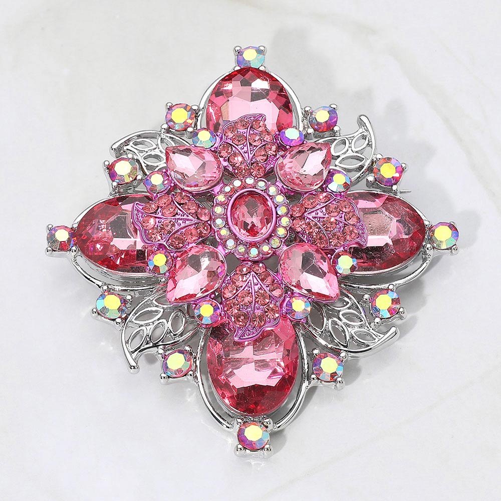 Details • Size : 3.25" X 3.5" • Pin Brooch • Elevate any outfit with this vintage floral crystal brooch designed with layered faceted accents and ornate detailing. Perfect for pinning on jackets, scarves, bags, or dresses, it adds dramatic sparkle and refined style, making it a standout accessory or thoughtful gift for special occasions and everyday elegance. • Lead and Nickel Compliant
