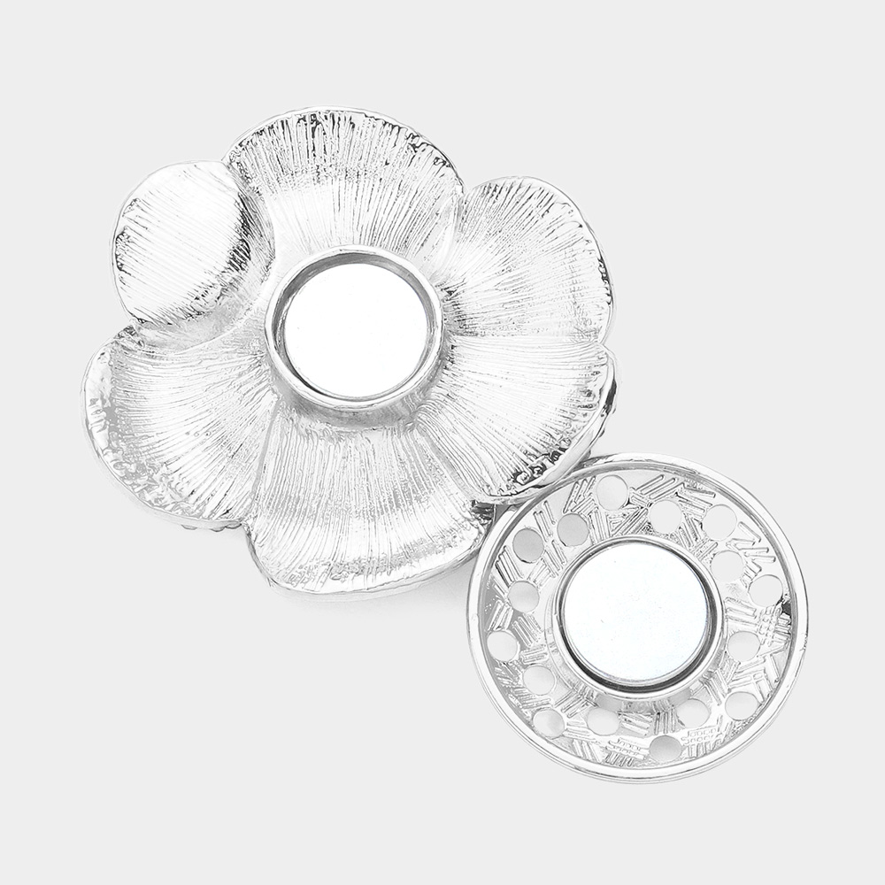 Rhinestone Flower Embellished Faux Fur Cuff Smart Touch Winter Gloves