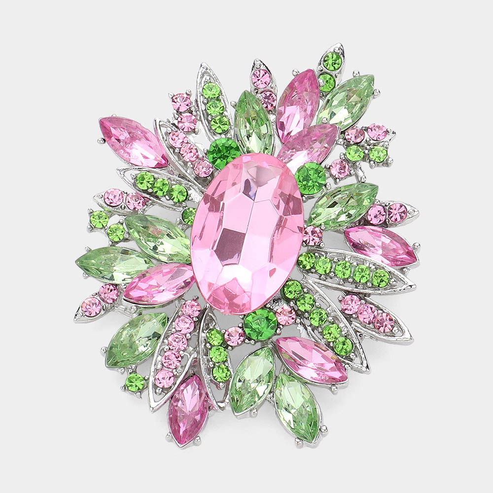 Flower Stone Cluster Pointed Glass Stone Embellished Leaf Pin Brooch