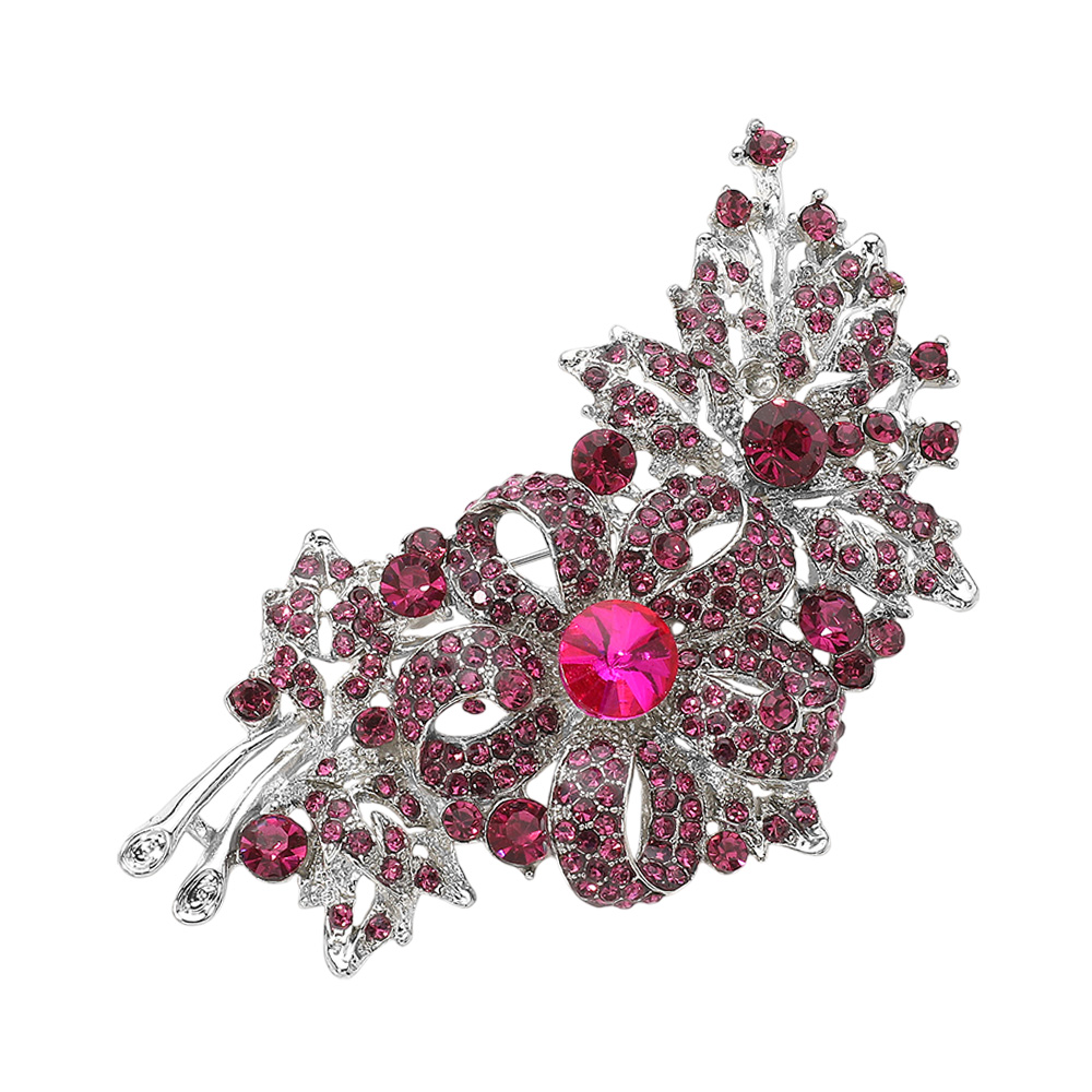 Crystal Stone Paved Flower Pin Brooch