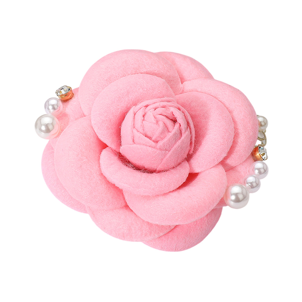 Enamel Flower Pearl Embellished Fabric Flower Pin Brooch Hair Clip