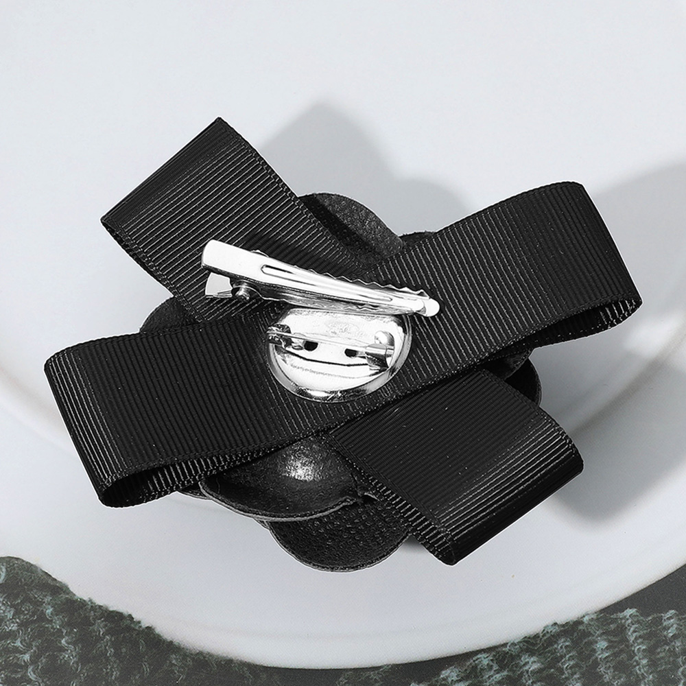 • Versatile brooch featuring a textured black flower and satin bow, complete with both pin and clip fastenings. Perfect for accessorizing jackets, scarves, hats, or handbags with a touch of elegance.