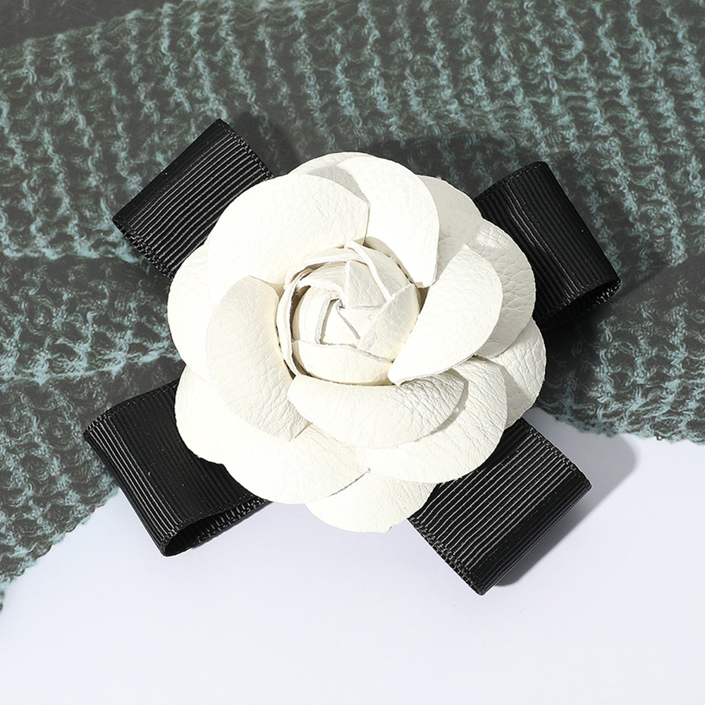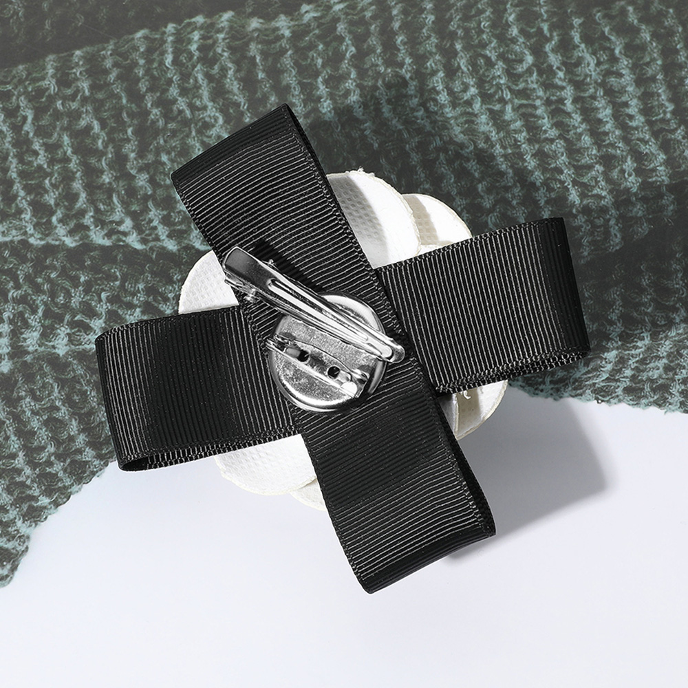 Details • Size : 3.25" X 2.8" • Dual : Pin Brooch / Hair Pinch Clip • Versatile brooch featuring a textured black flower and satin bow, complete with both pin and clip fastenings. Perfect for accessorizing jackets, scarves, hats, or handbags with a touch of elegance. • Lead and Nickel Compliant