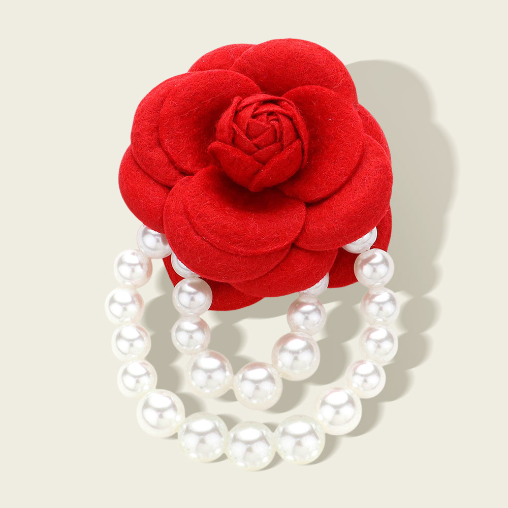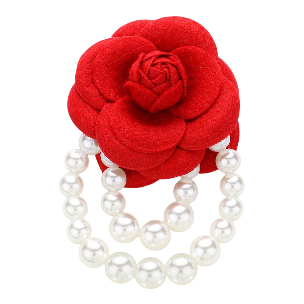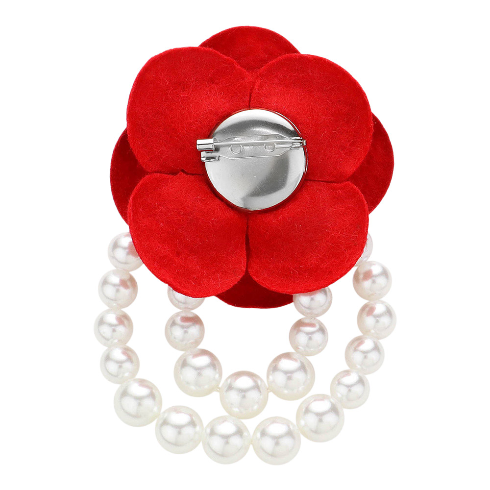 Felt Rose Pointed Pearl Embellished Pin Brooch